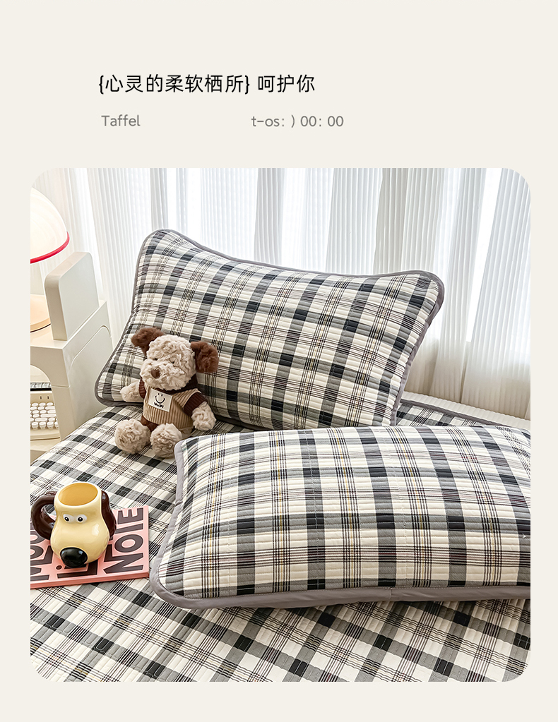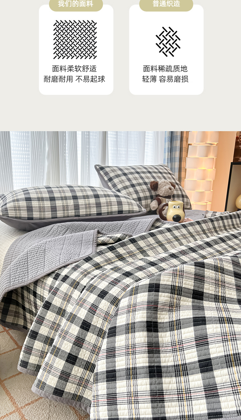 • 91家纺网 家纺一手货源 找家纺 茉夕家纺 2024新款跑量款纯棉单面棉高温水洗床盖 黑白格
