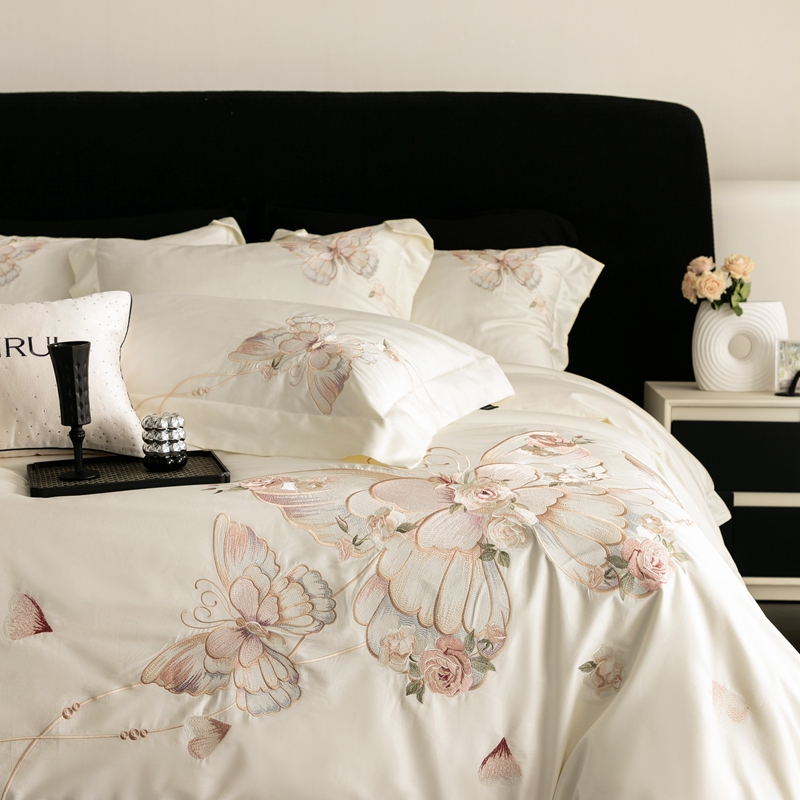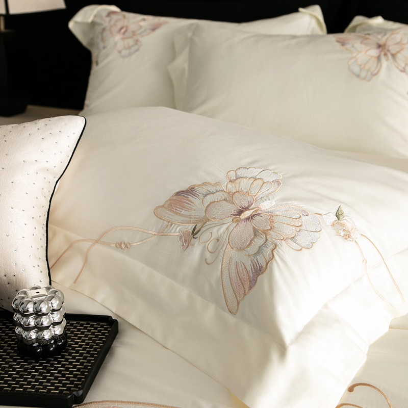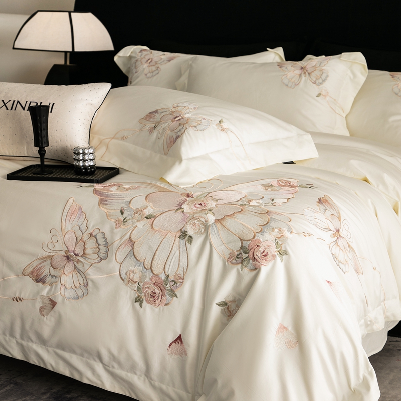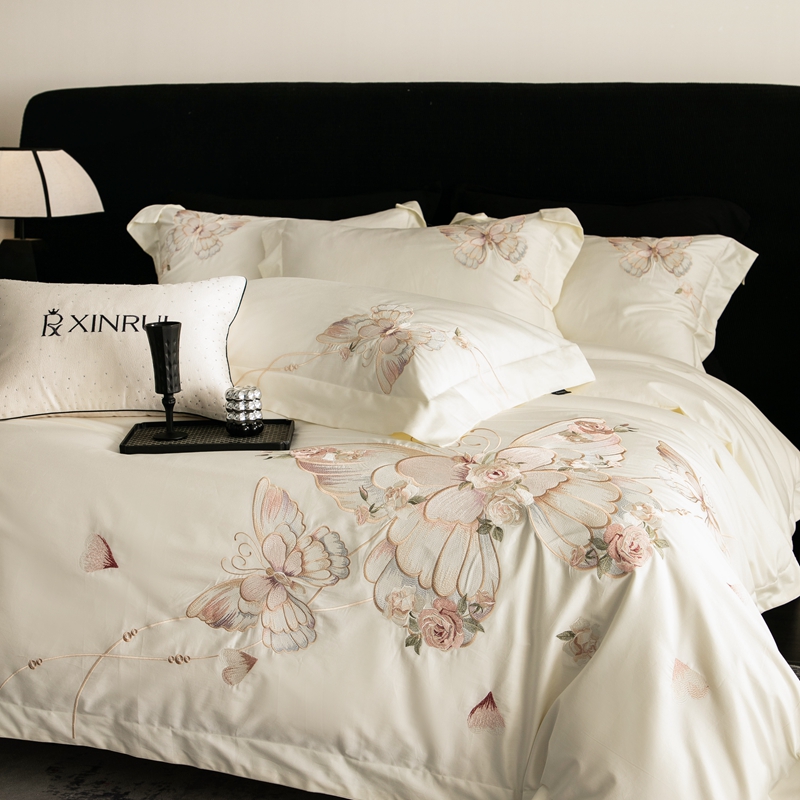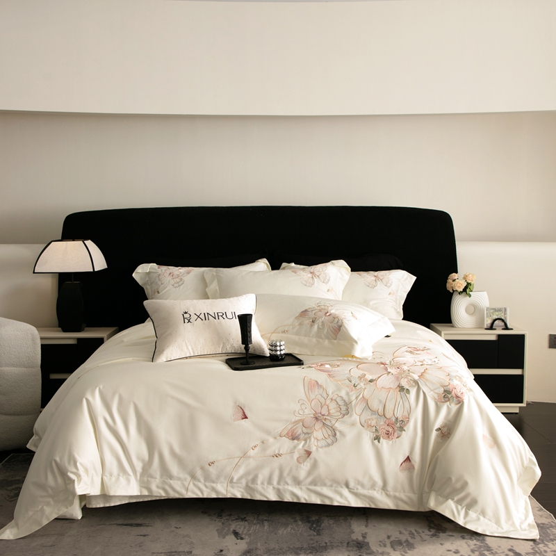 商品名称:馨蕊家居 2024秋冬新品100S高奢简约长绒棉纯棉四件套系列全棉四件套-梦幻 梦幻-元气白桃