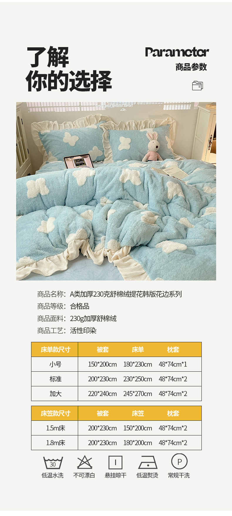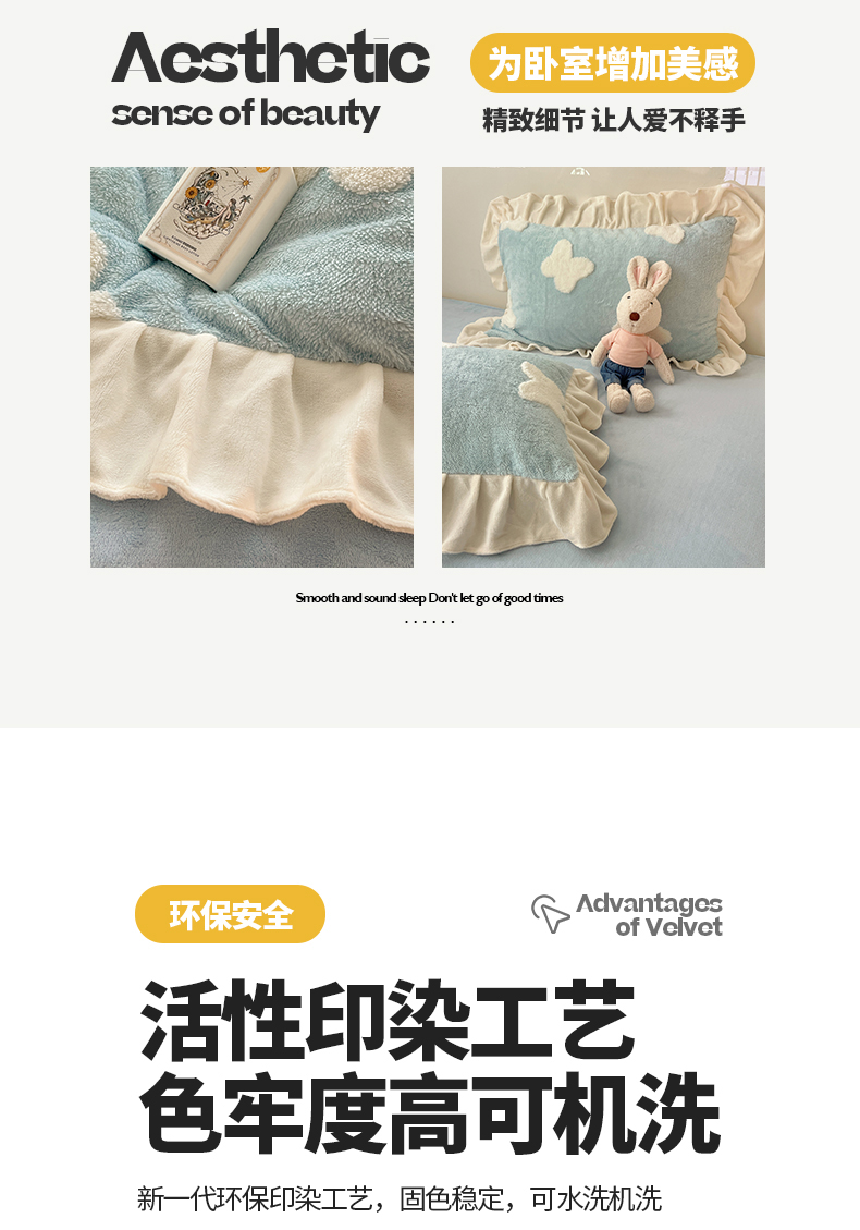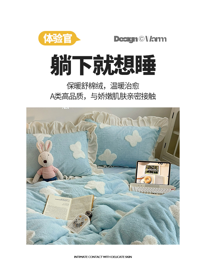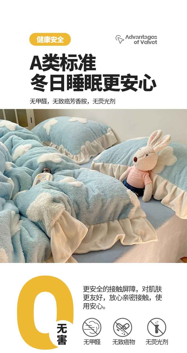 当前位置: 91家纺网 > 商品网购 > 床品套件 > 四件套 > 牛奶绒四件套 > 桃子家居 2024新款A类加厚230克色纱提花蝴蝶少女花花韩版花边舒棉绒牛奶绒系列四件套 舒棉绒花边-浪漫蝴蝶蓝白