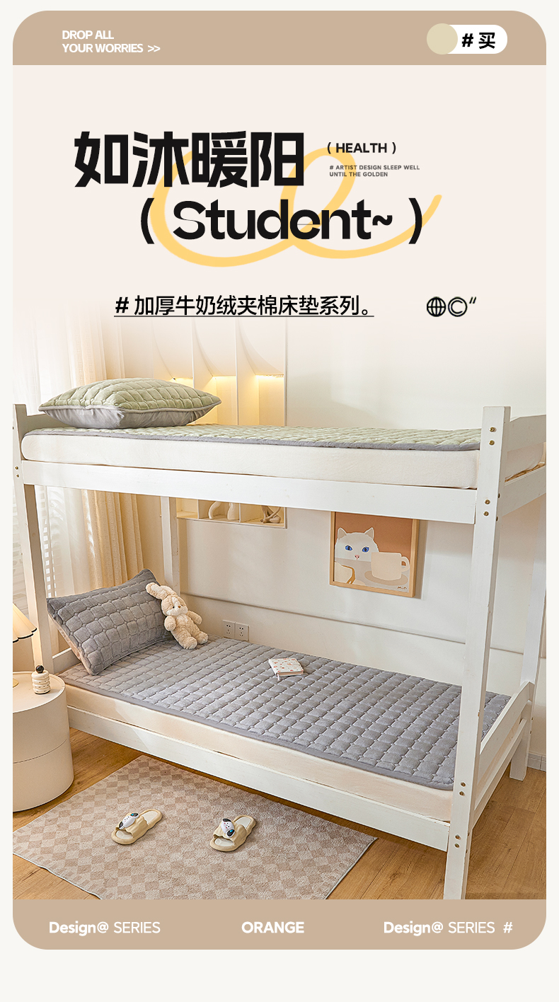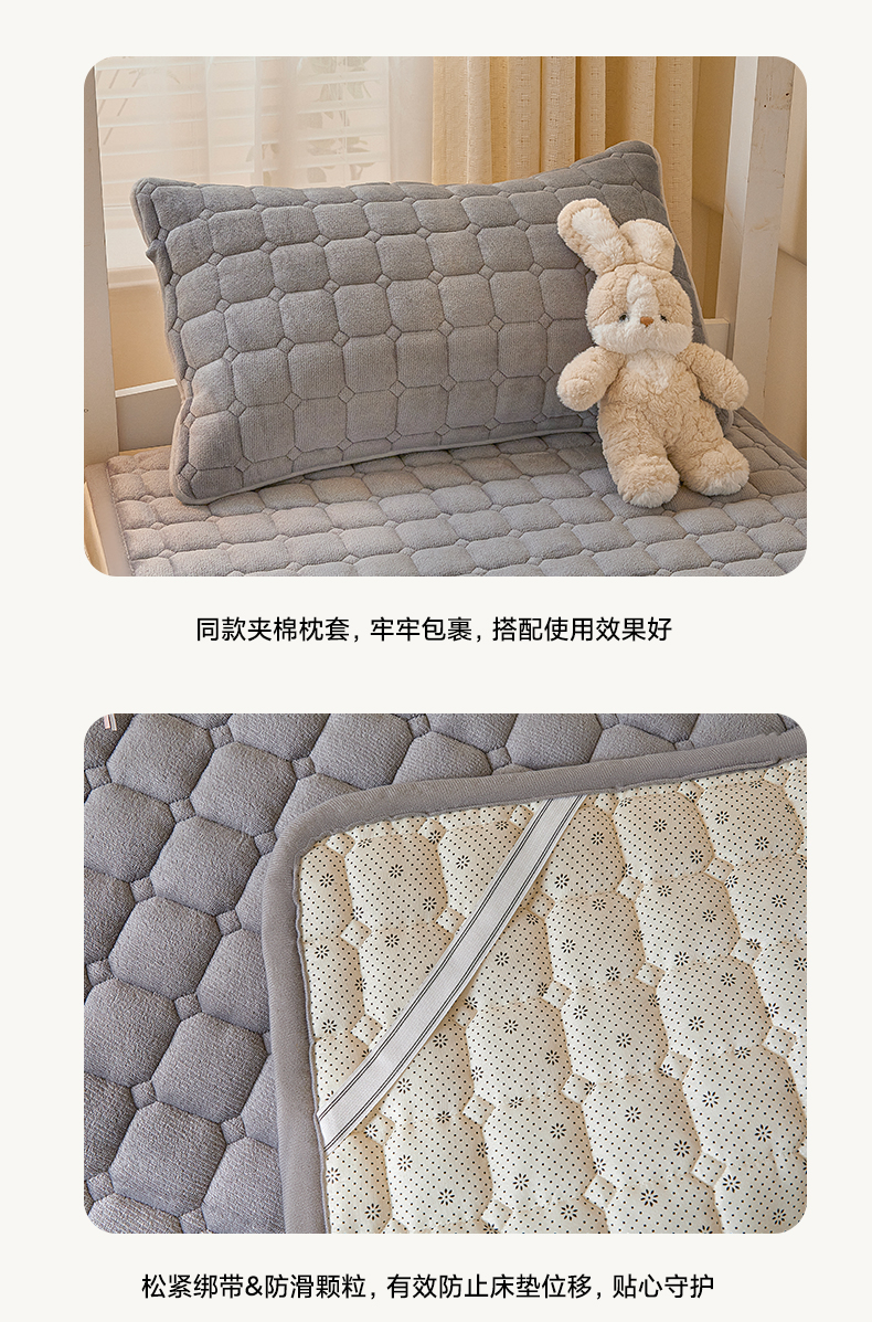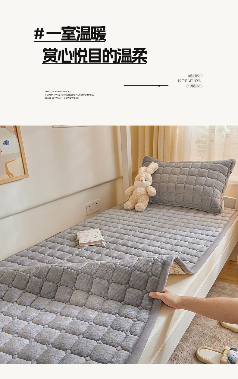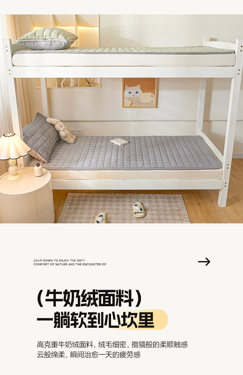 商品名称:卡伦家纺 2025新款A类牛奶绒夹棉加厚床垫学生宿舍单人床垫 商务灰