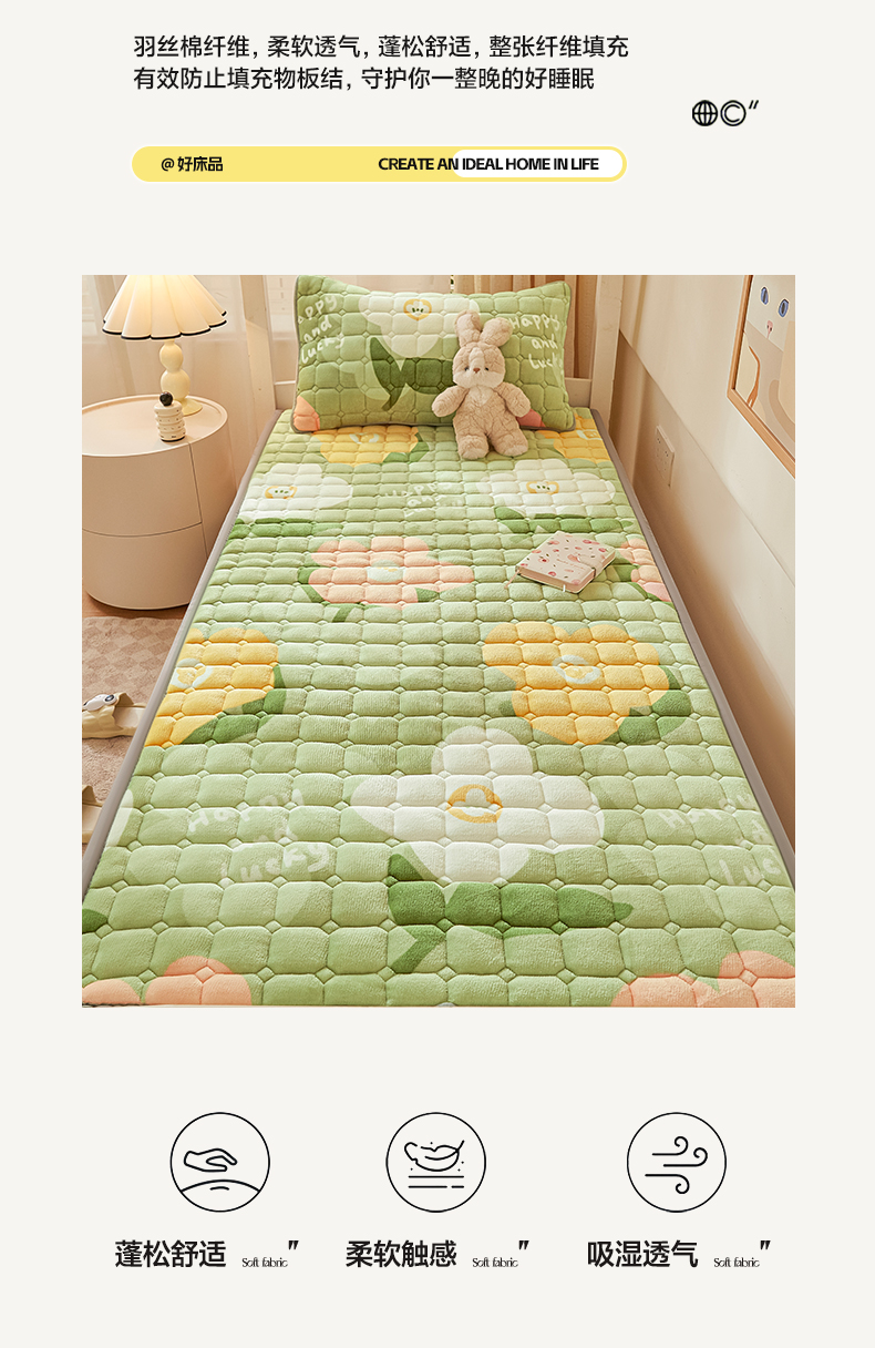 商品名称:卡伦家纺 2025新款A类牛奶绒夹棉加厚床垫学生宿舍单人床垫 花之谷