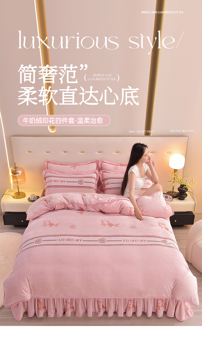 (总2)橘姿 2025新款8-9斤床裙款牛奶绒四件套,荷塘月色,简约时尚,静若幽香,乐薇花园,鹿之恋,心相印,一鹿有你,时尚潮流,爱恋粉,爱情花语,爱语,爱之依恋,百合情缘,发财树,富贵牡丹,花香怡人,花样情怀,欢乐兔,蓝大格,浪漫甜心,暖意,情人草灰,时尚小熊,相爱一生大红,心动萌宝,幸运树,叶叶枫情,一叶倾心,银杏叶语,在一起
