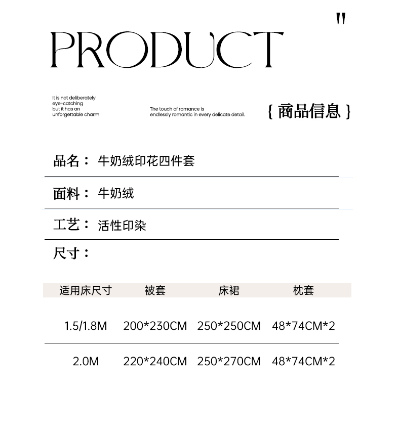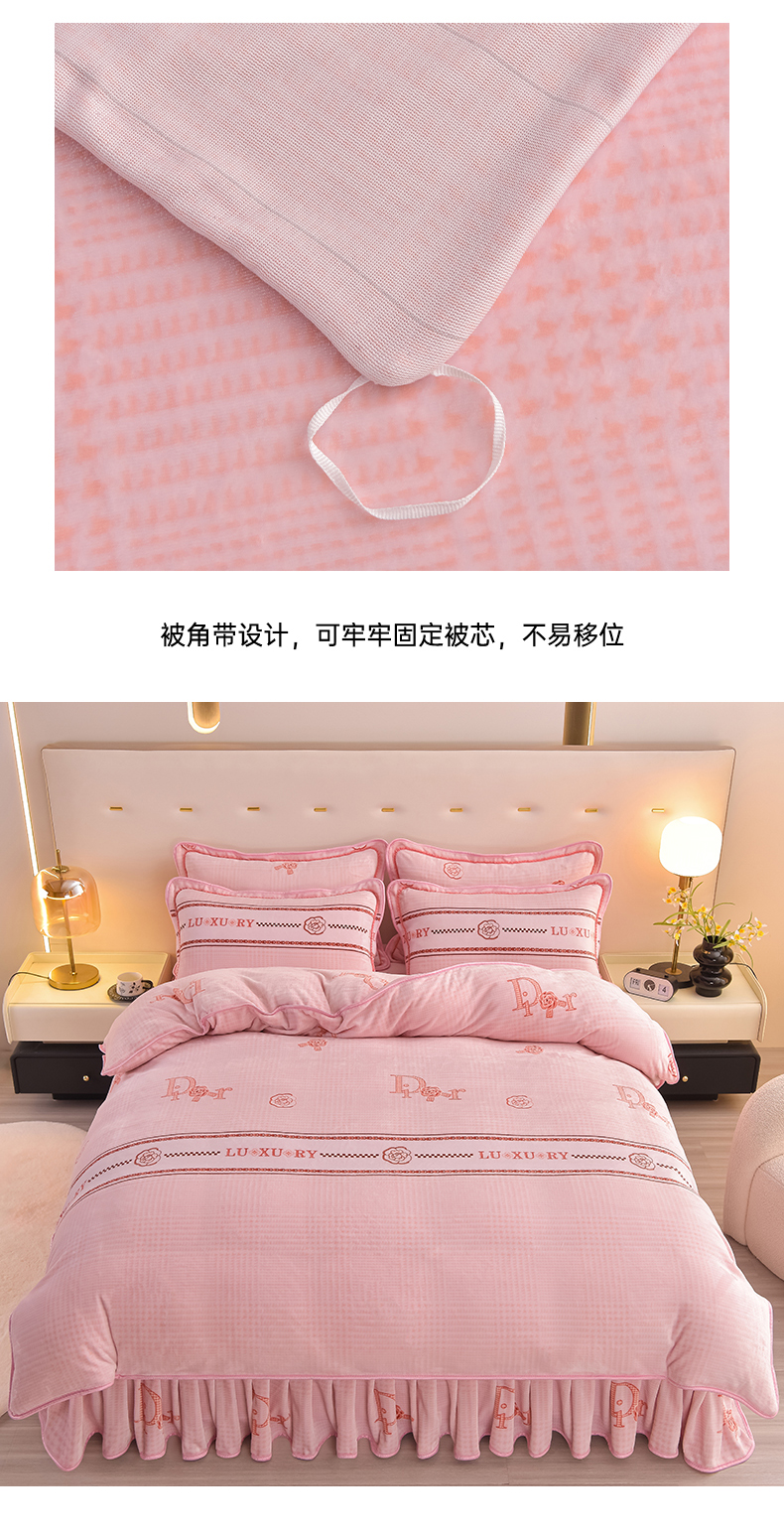 商品名称:橘姿 2024新款8斤床裙款牛奶绒四件套 爱情花语