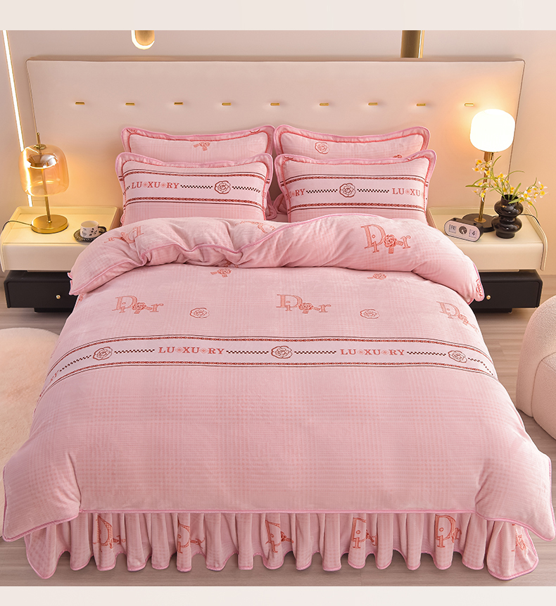 橘姿 2024新款8斤床裙款牛奶绒四件套 爱情花语