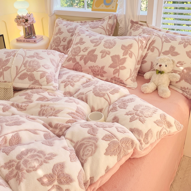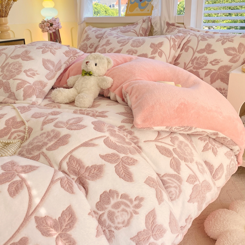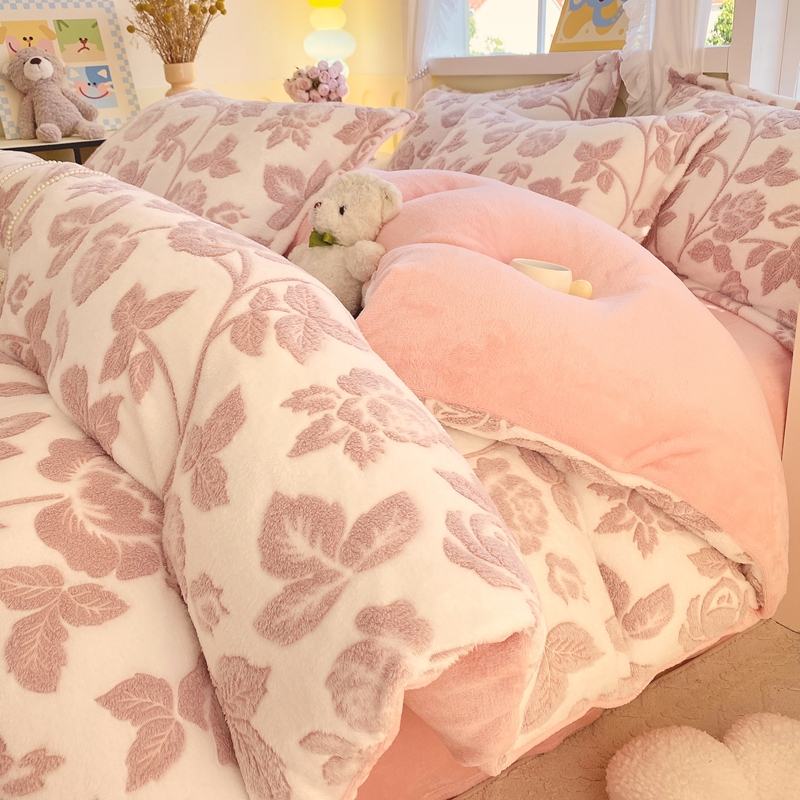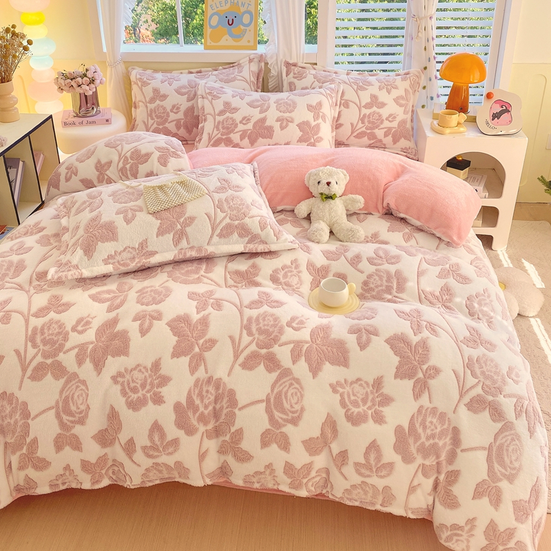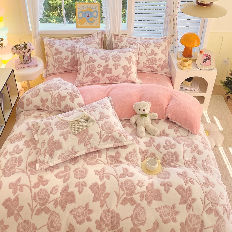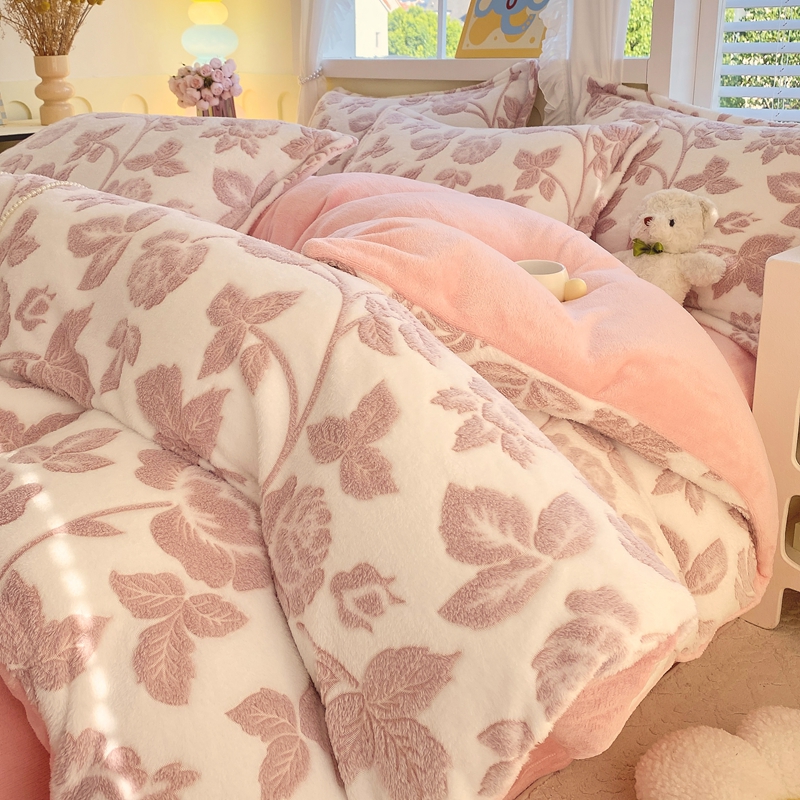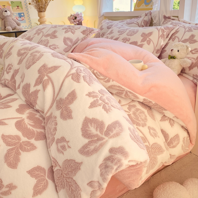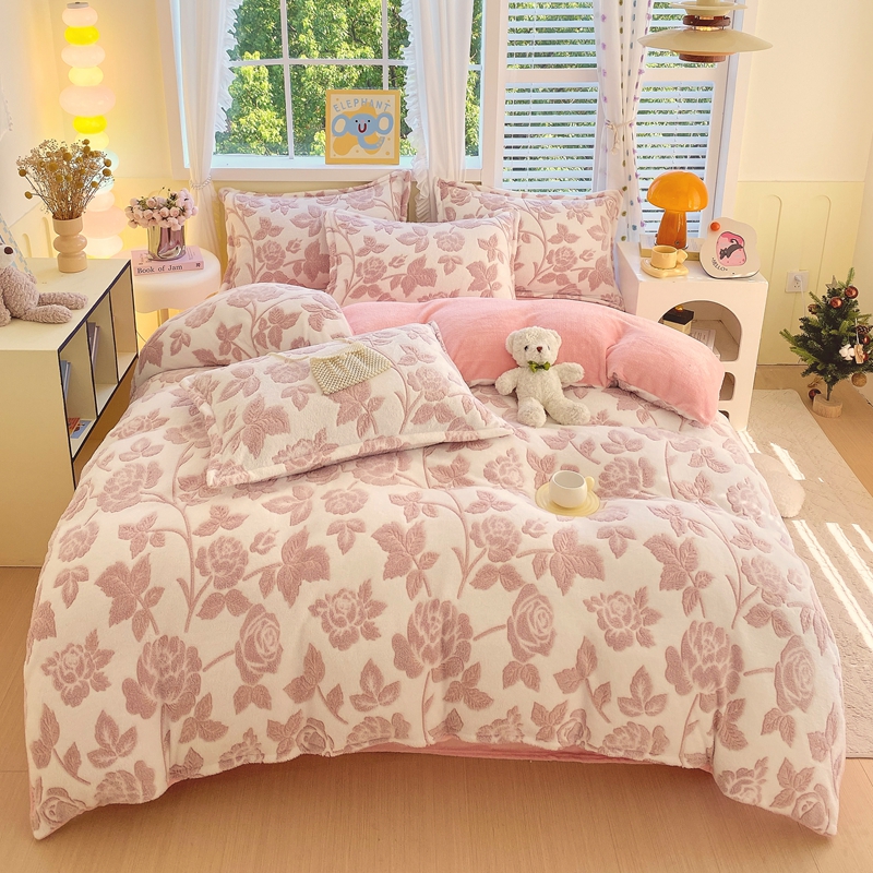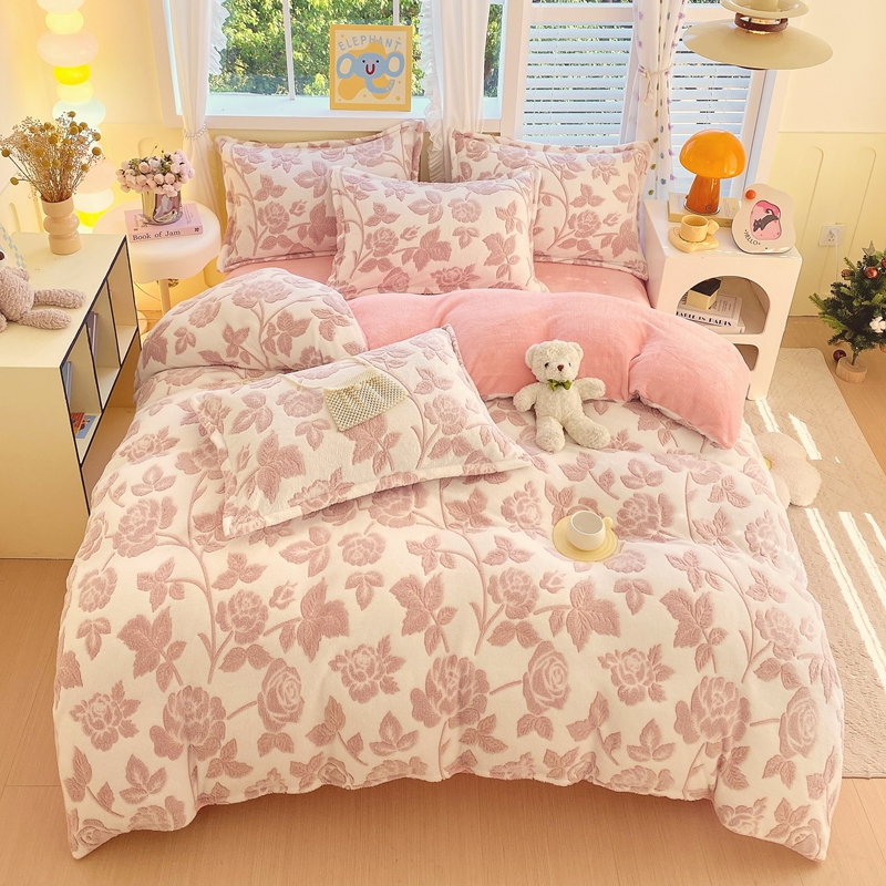 当前位置: 91家纺网 > 商品网购 > 床品套件 > 四件套 > 雕花绒四件套 > 佰亿莱 2024新款5D雕花雪花绒四件套素颜花