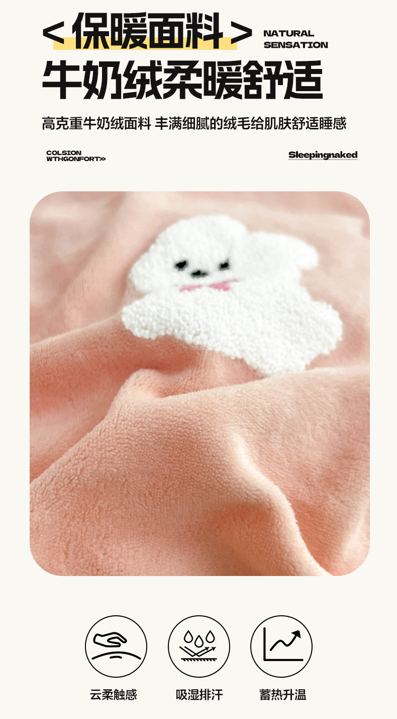 商品名称:亨通家纺 2024新款高克重法式牛奶绒四件套系列-可爱风 可爱风-果绿