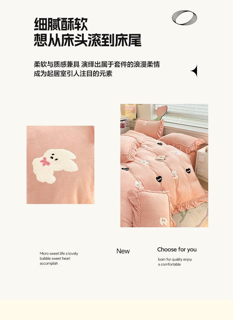 亨通家纺 2024新款高克重法式牛奶绒四件套系列-可爱风 可爱风-果绿