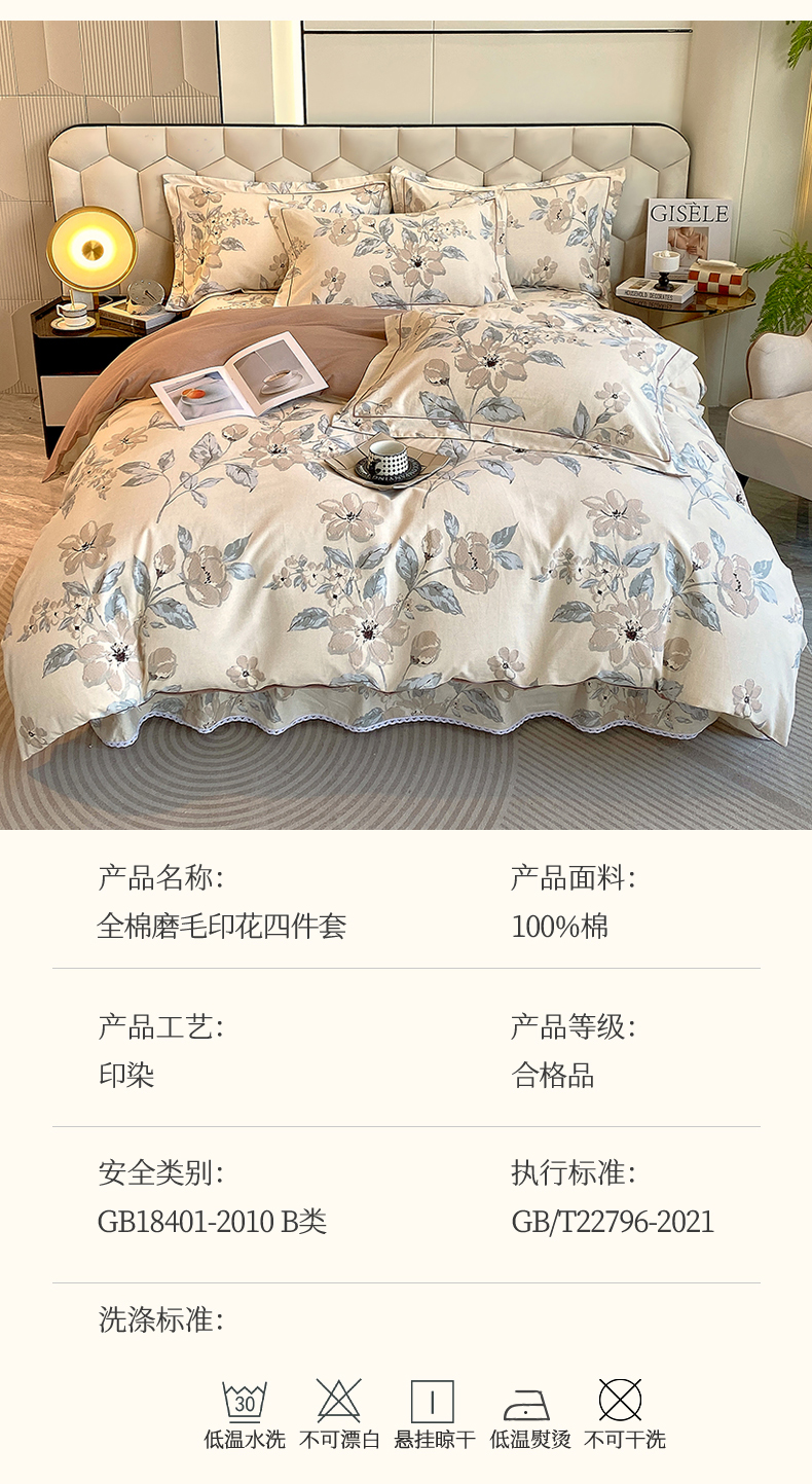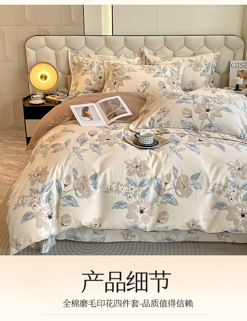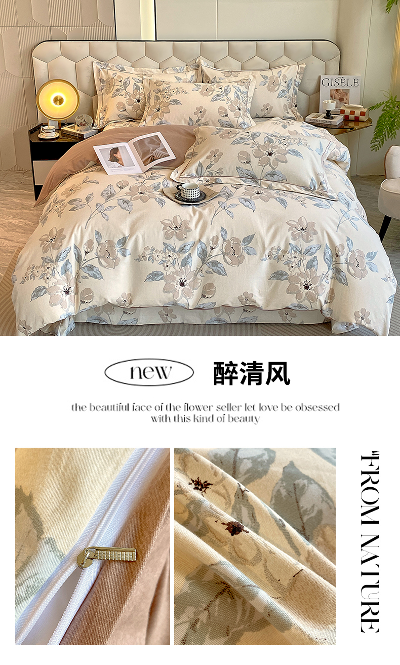 当前位置: 91家纺网 > 商品网购 > 床品套件 > 四件套 > 全棉普通四件套 > 2024新款全棉磨毛印花四件套系列 醉清风