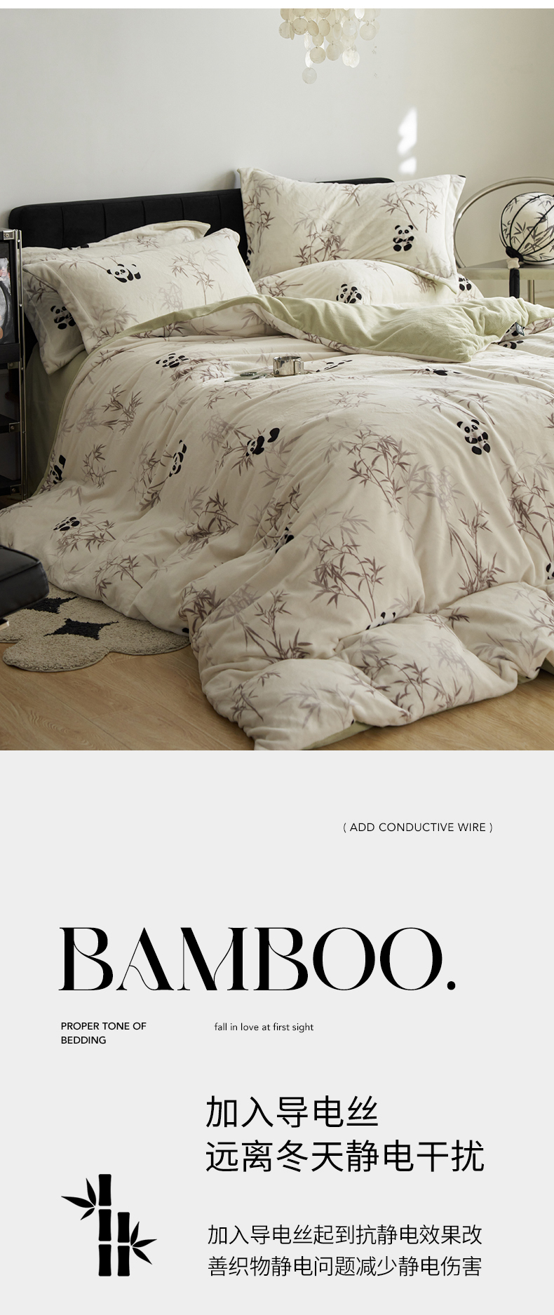 商品名称:千朵森 2024新款网红印花熊猫牛奶绒四件套 风格二 子初