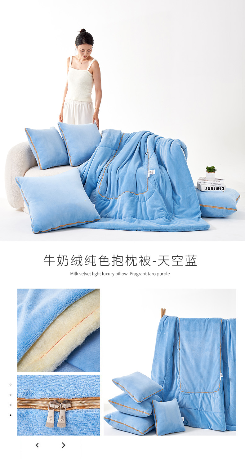 商品名称:照世家纺 2024新款牛奶绒纯色抱枕被(控价68/89/129/169/219) 天空蓝