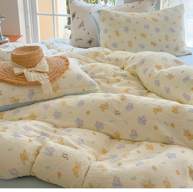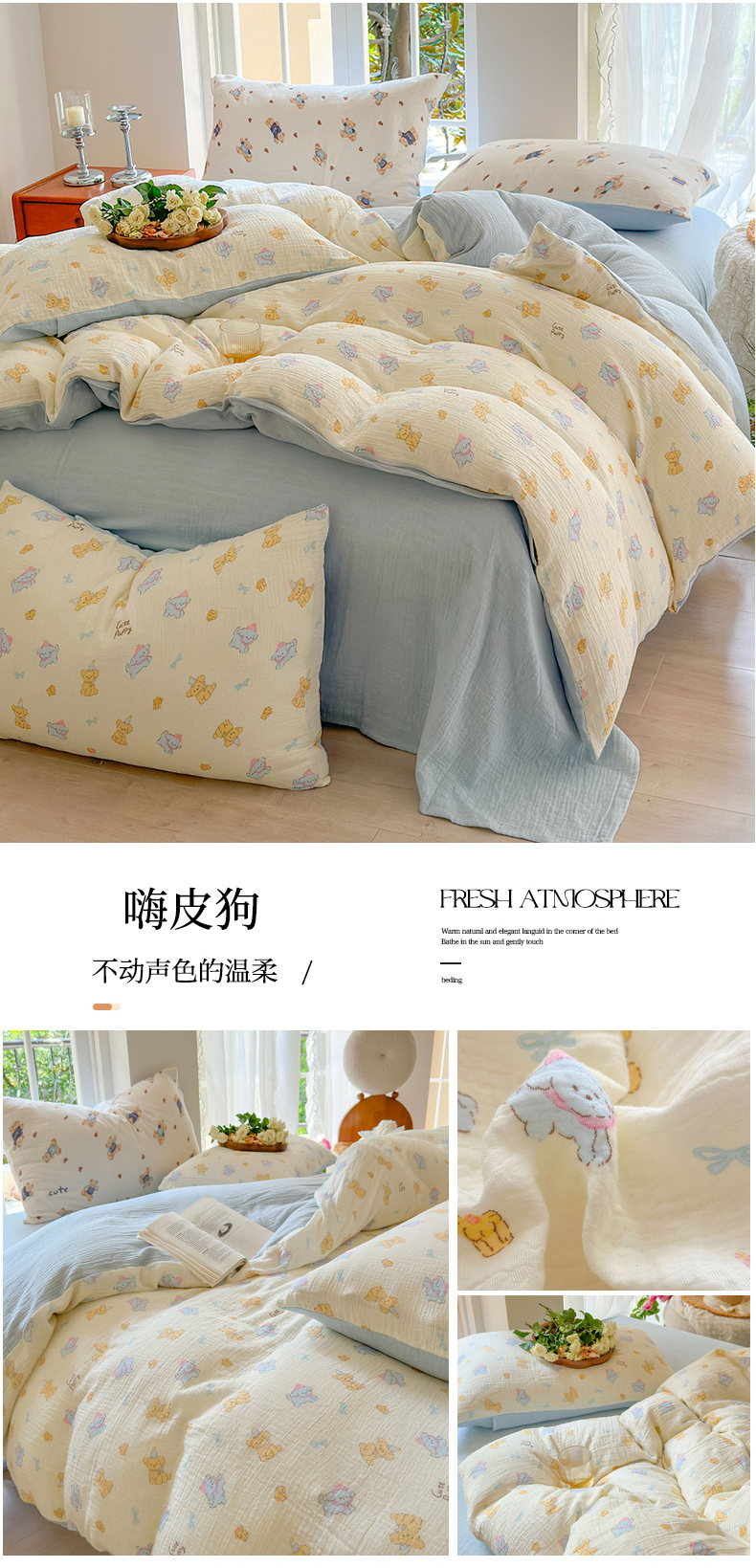 木楌 2025新款全棉A类皱皱纱印花四件套海皮狗
