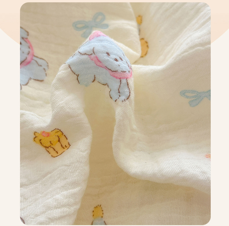 (总)木楌 2025年新款双层皱皱纱刺绣款夏被大豆被,蓓蕾,小飞象,蝴蝶结,领结兔,枇杷叶,三叶草,小樱桃,幸运熊