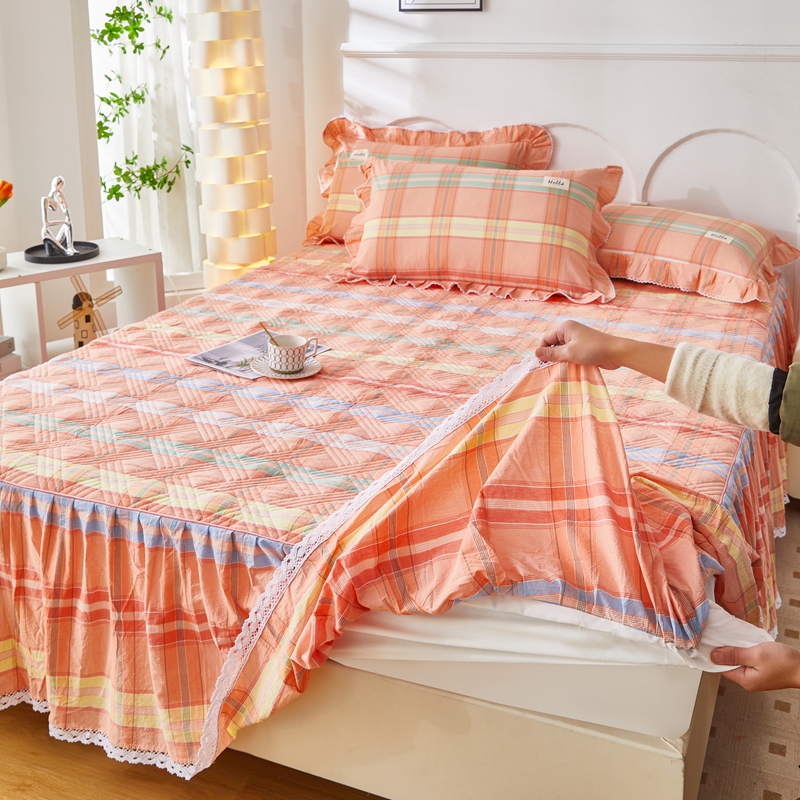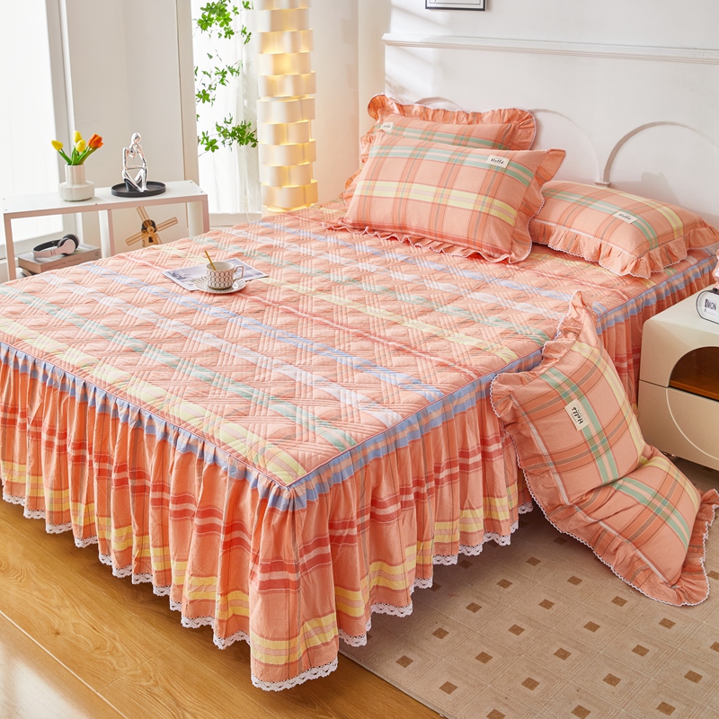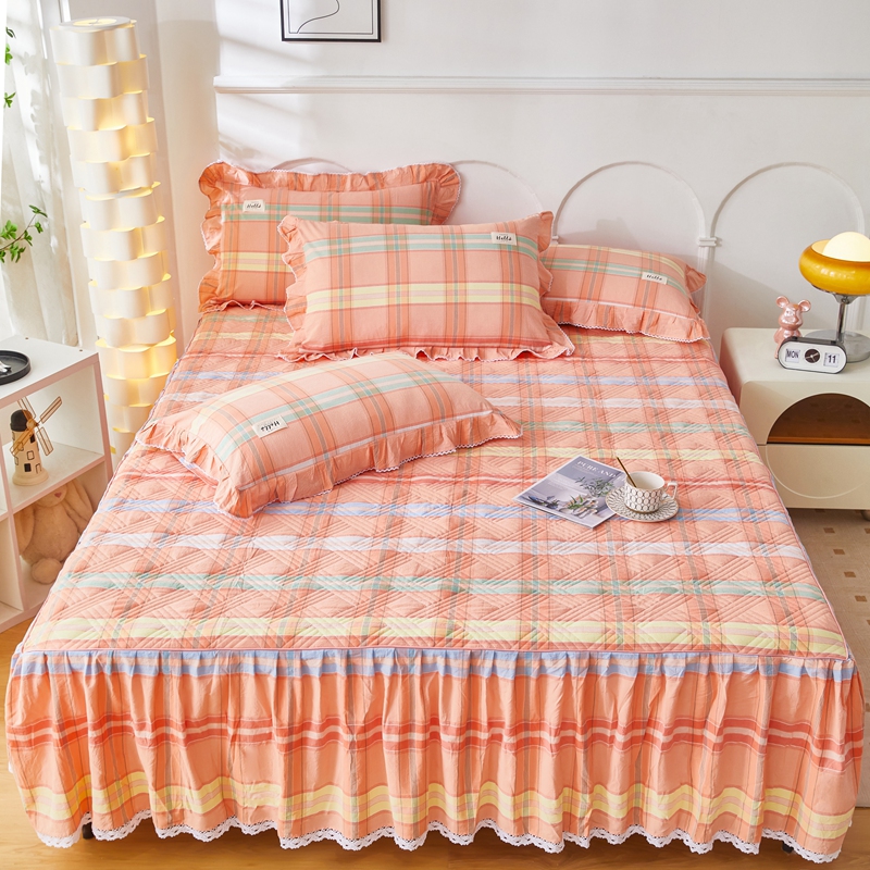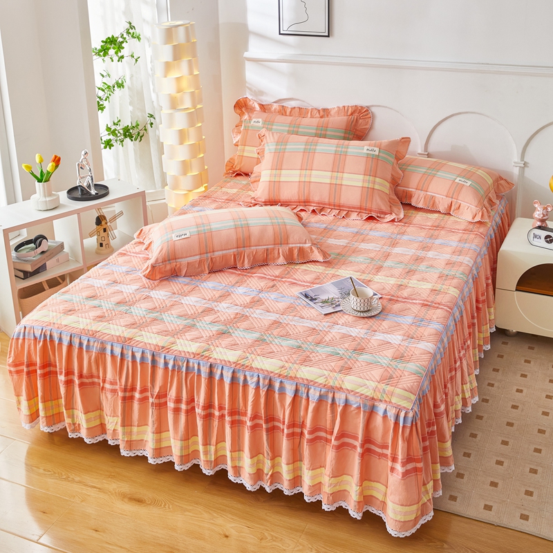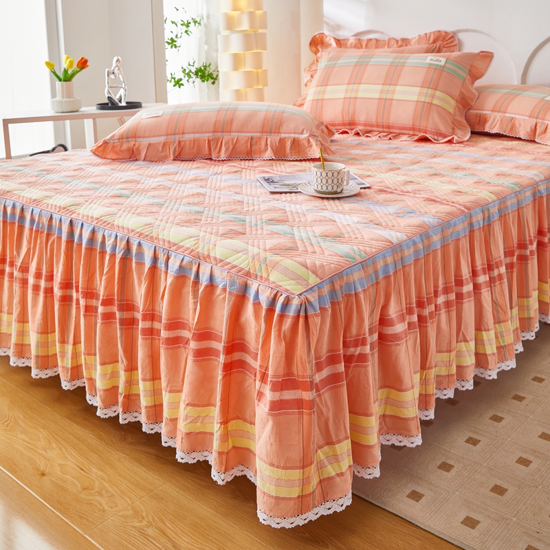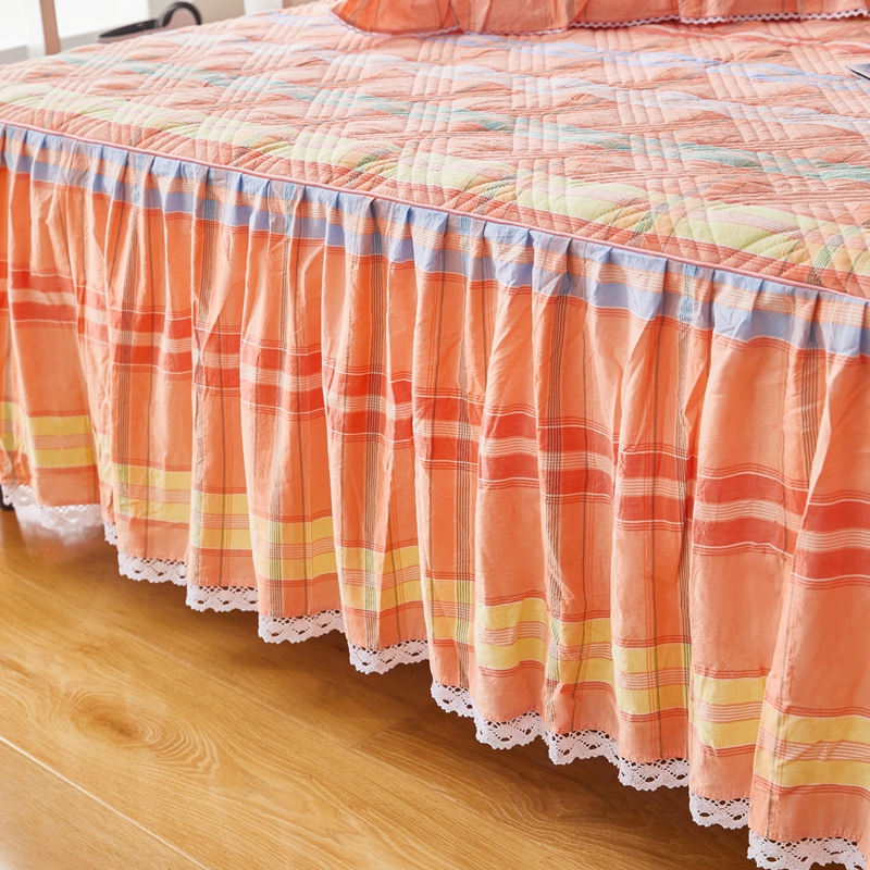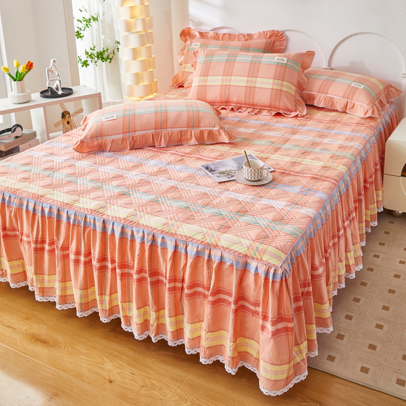 缦彩 2024新款全棉纯棉水洗棉夹棉加厚床裙床笠裙 多芬桔
