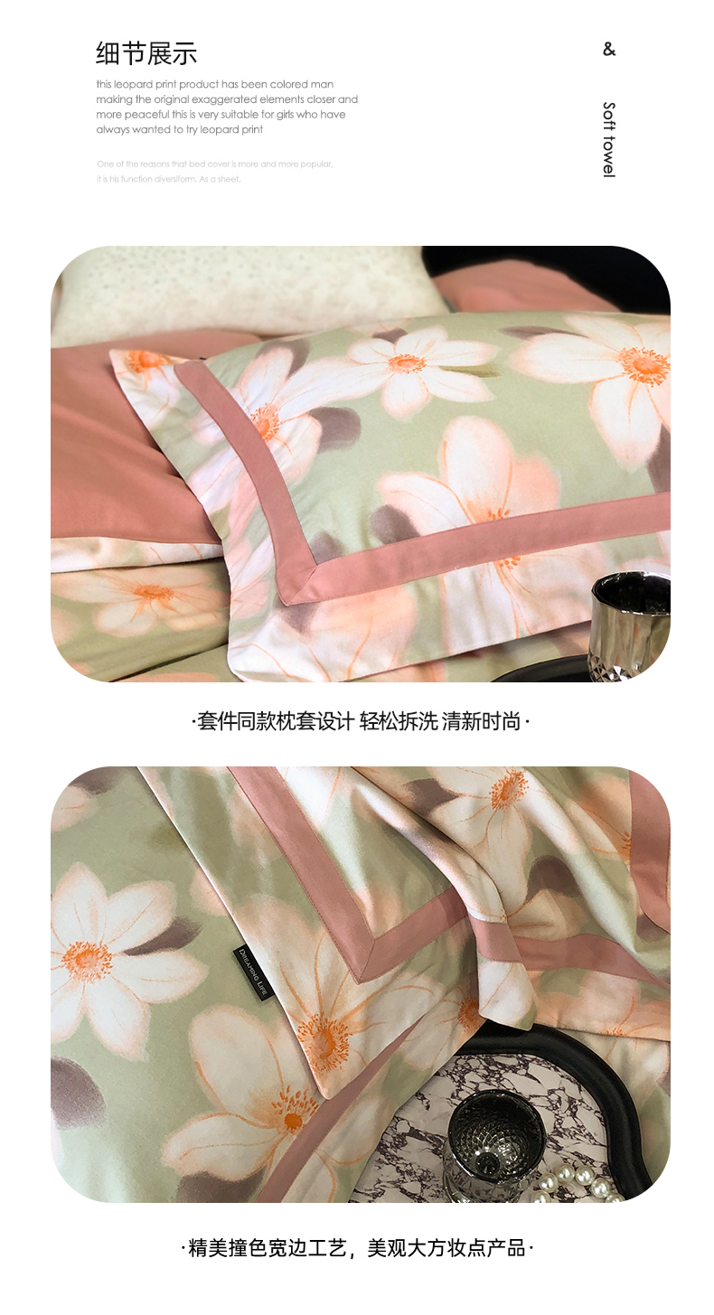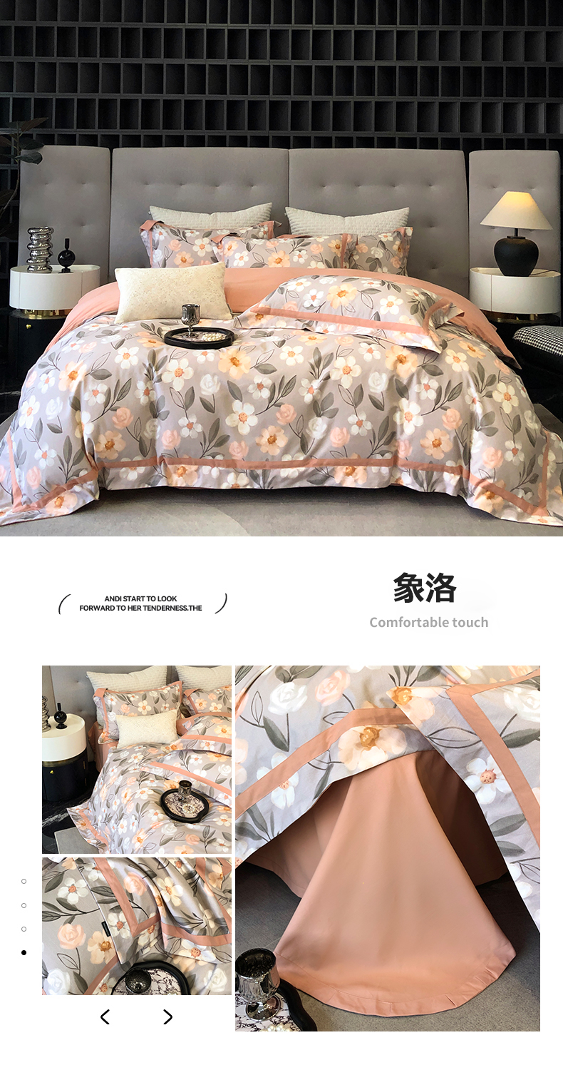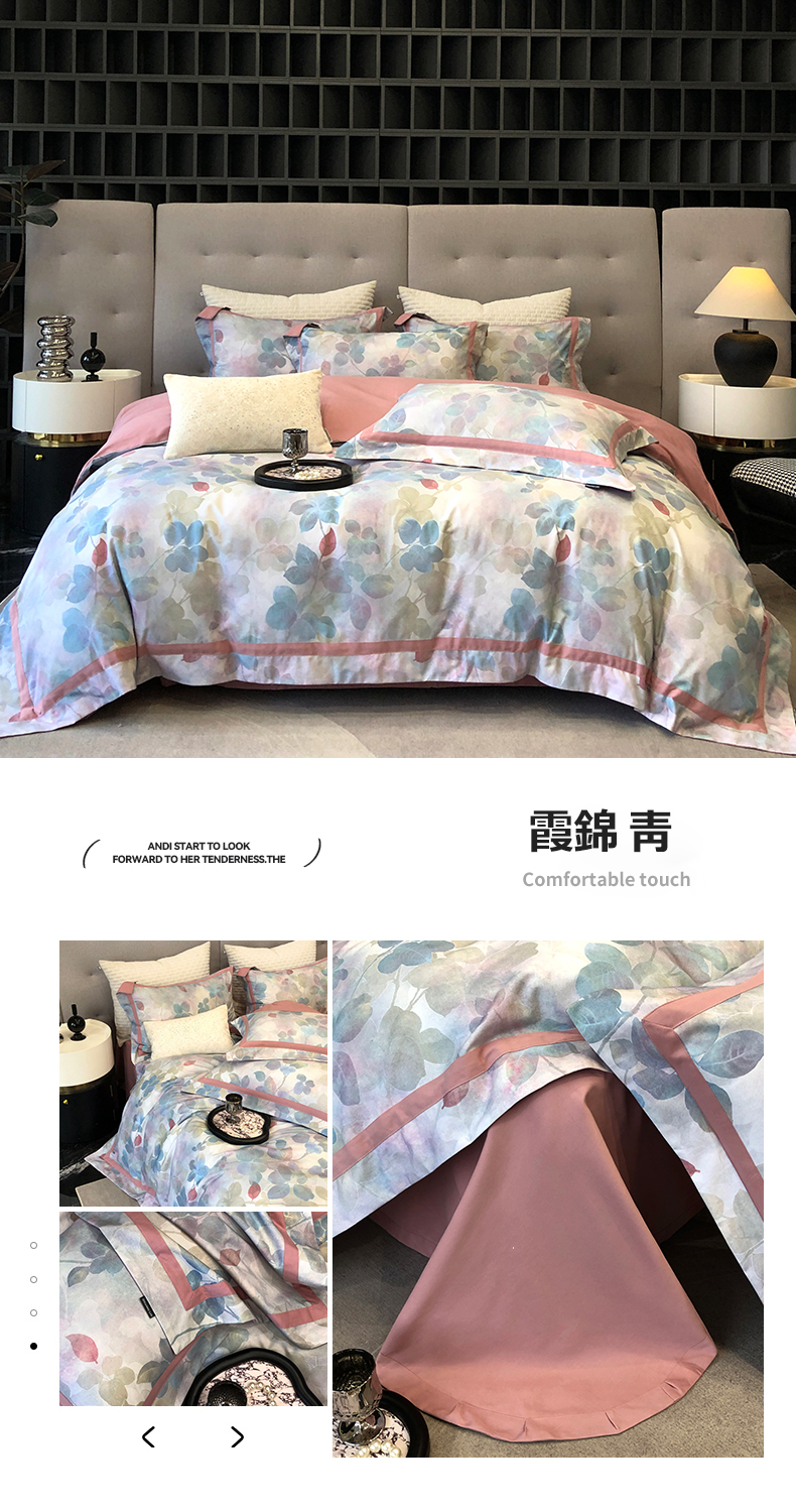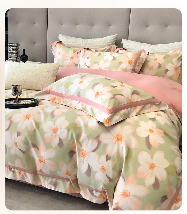 薏思家纺 2025新款全棉生态磨毛数码印花高奢撞色四件套-繁花系列Blossoms 语诺粉