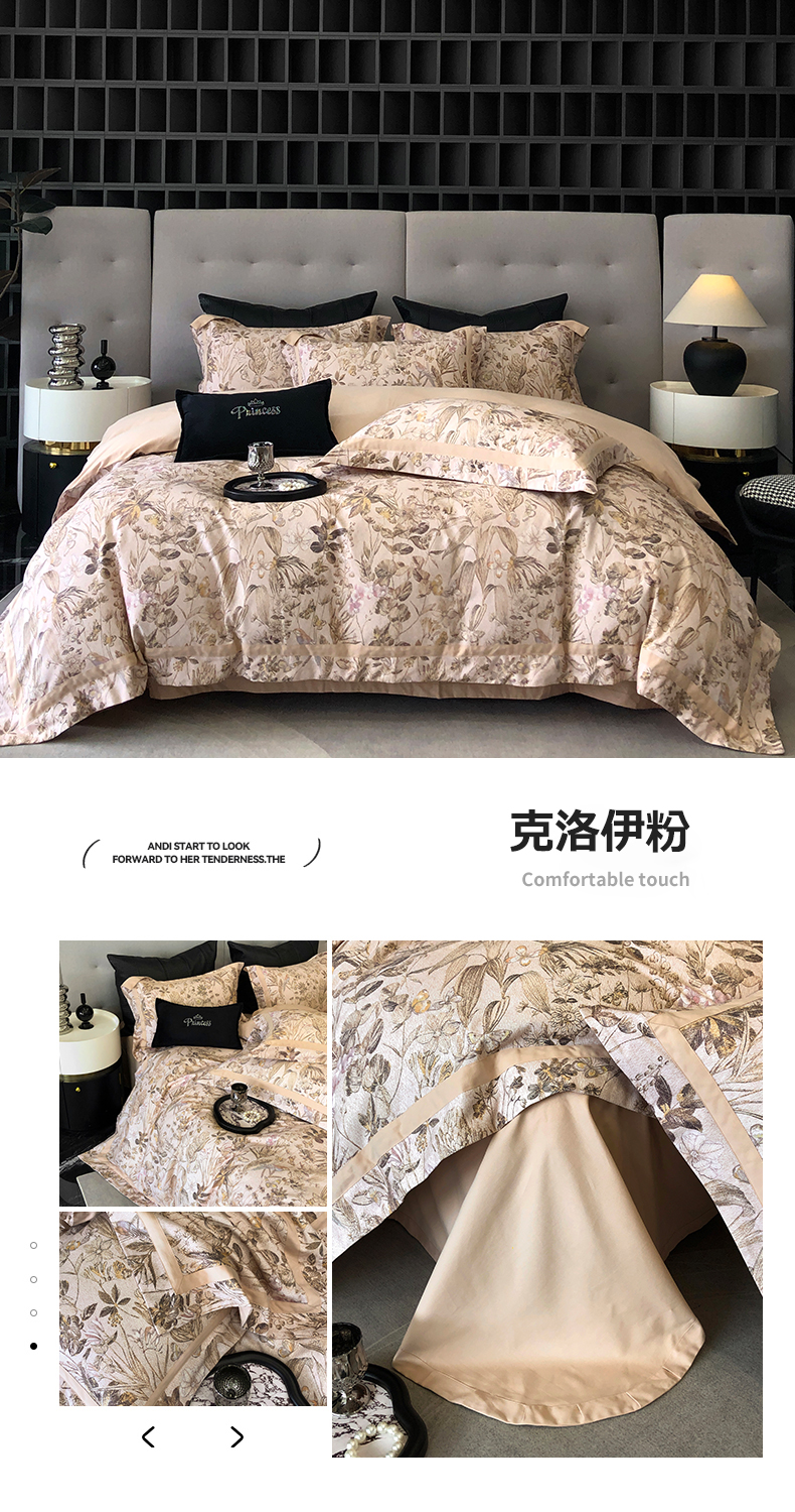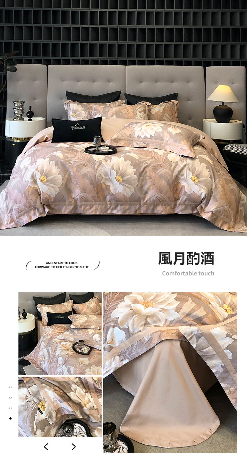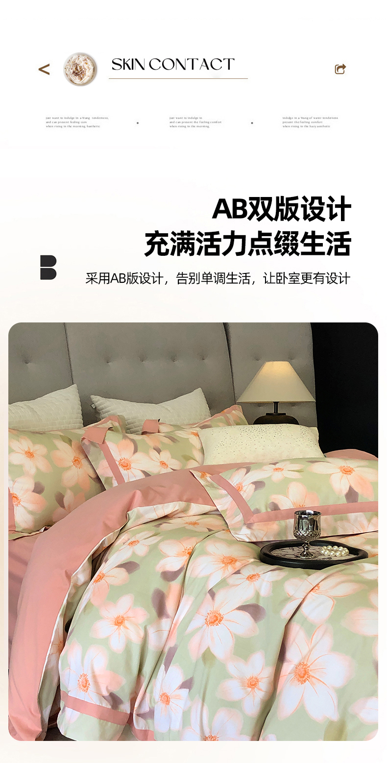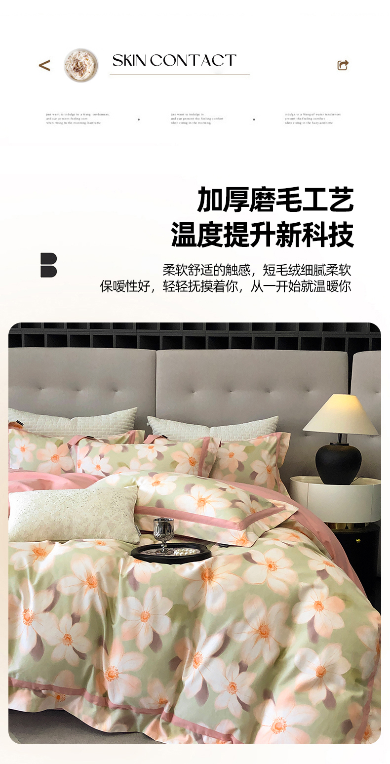 薏思家纺 2025新款全棉生态磨毛数码印花高奢撞色四件套-繁花系列Blossoms 语诺粉