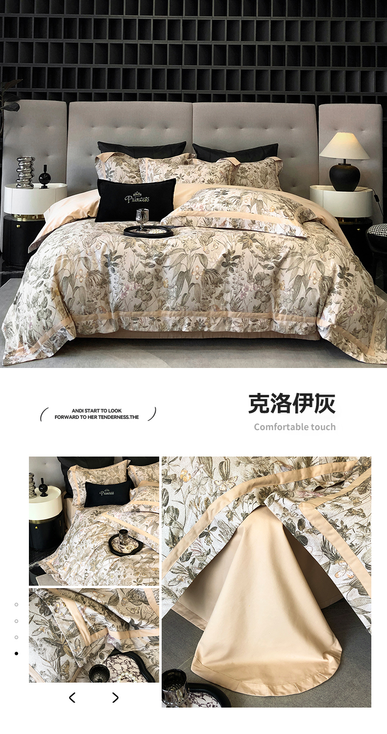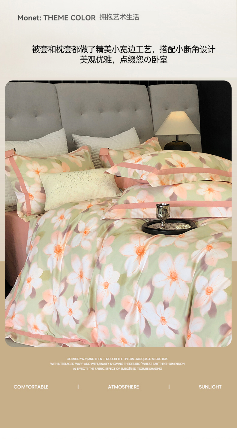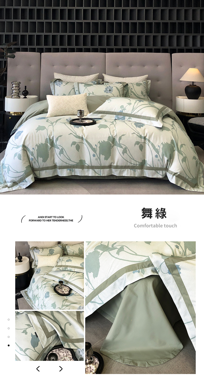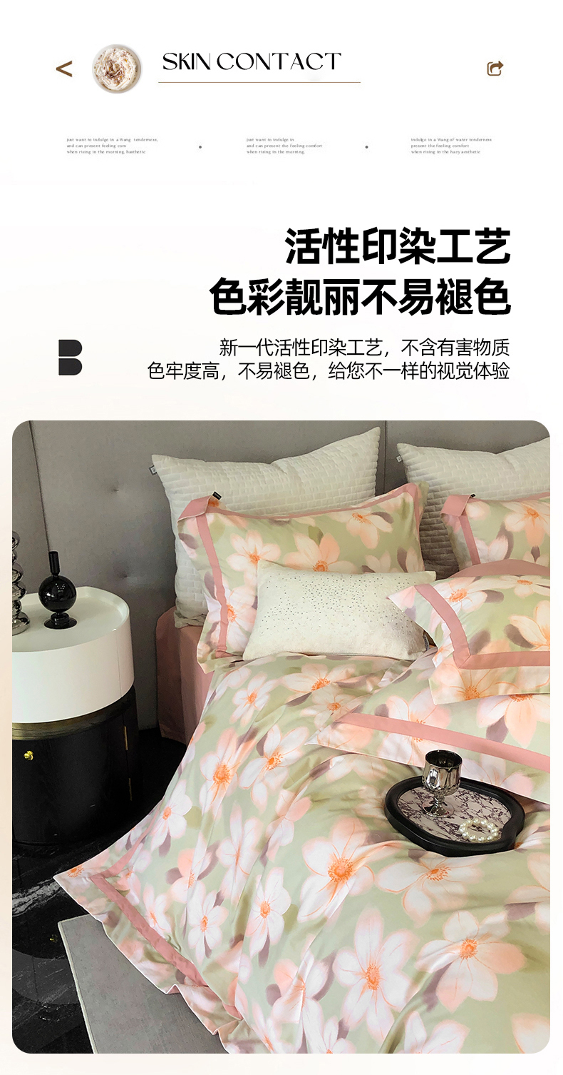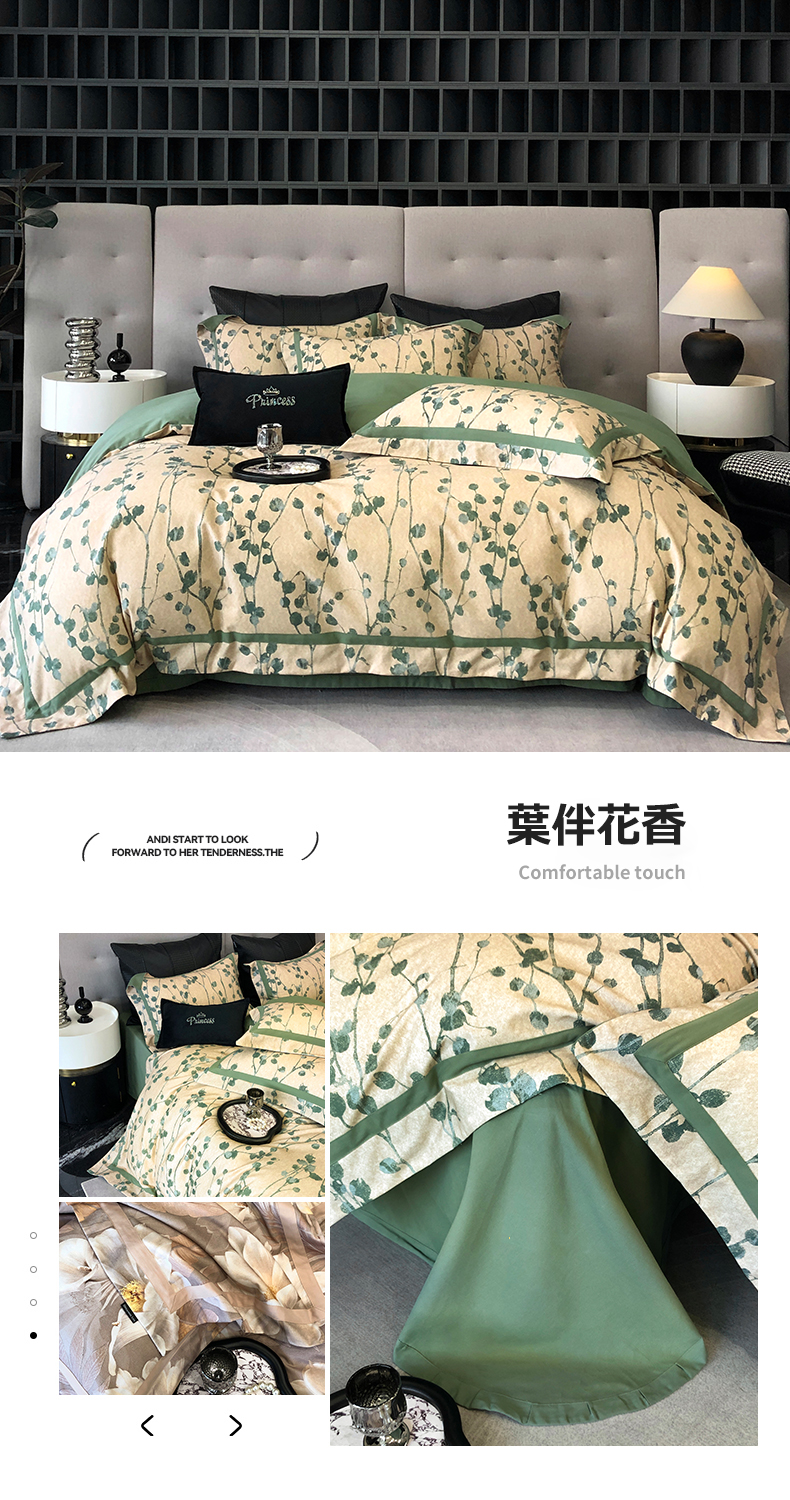 (总)薏思家纺 2025新款全棉100支数码印花生态磨毛轻奢款四件套-花边系列,橘子海,向云端,寻野-绿