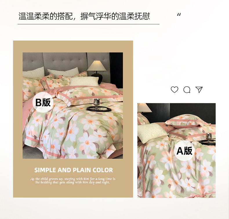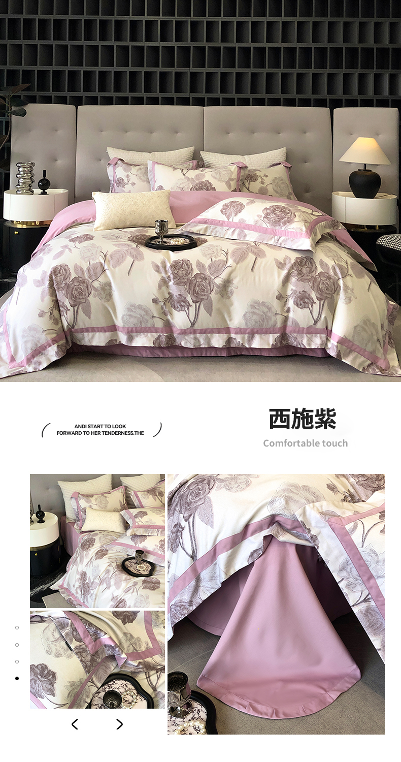(总)薏思家纺 2025新款全棉100支数码印花生态磨毛轻奢款四件套-珍珠纽扣系列,花弄影-青,花弄影-玉,花弄影-紫,紫纱春日