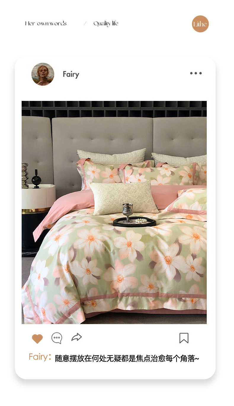 商品名称:薏思家纺 2025新款全棉生态磨毛数码印花高奢撞色四件套-繁花系列Blossoms 语诺粉