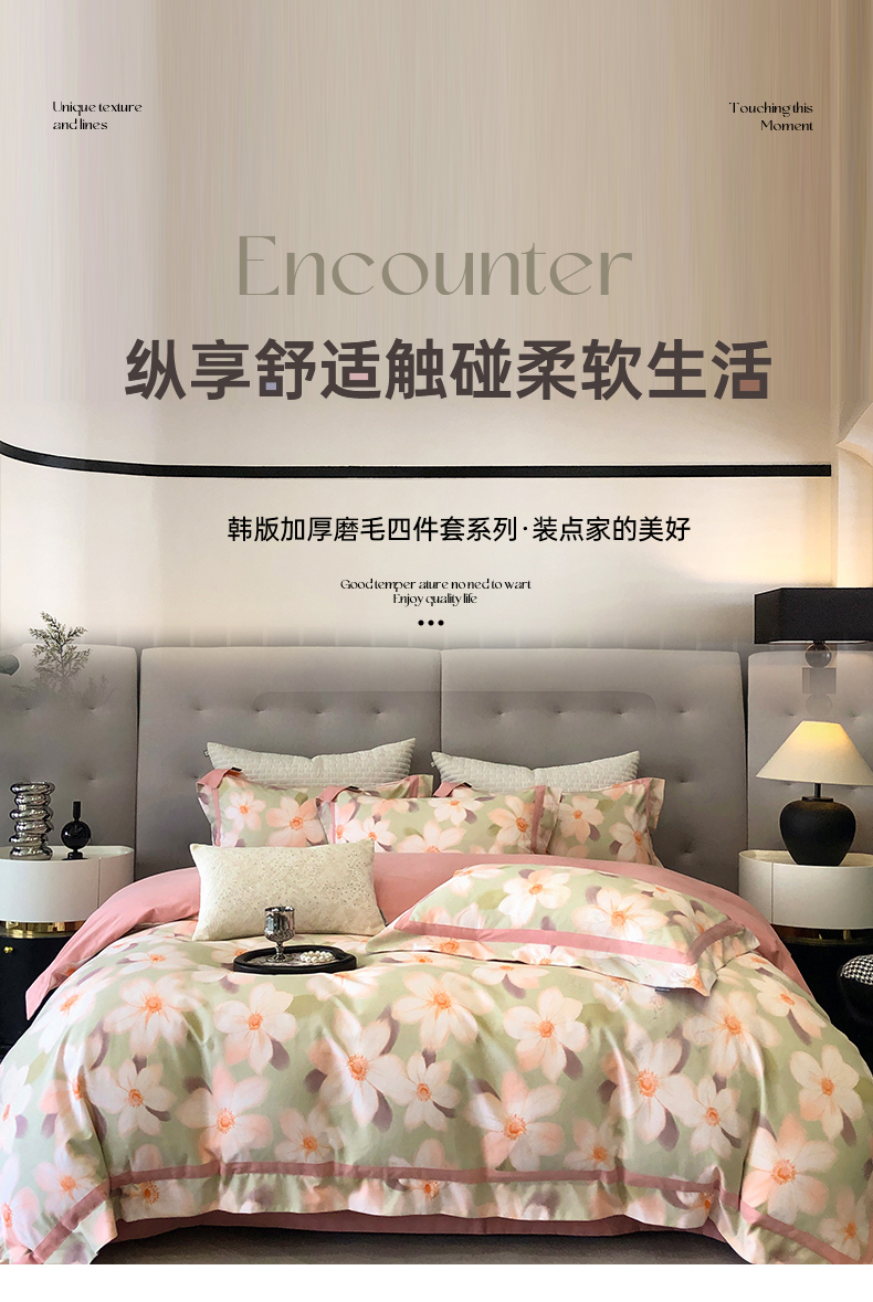 (总)薏思家纺 2025新款全棉纯棉数码印花双宽边磨毛四件套-繁花,春光郁金粉,花茉里-米白,克洛伊粉,克洛伊灰,暮光幽紫,蔷薇之恋,恬觅,温婉粉,舞 绿,心柔-绿,叶伴花香