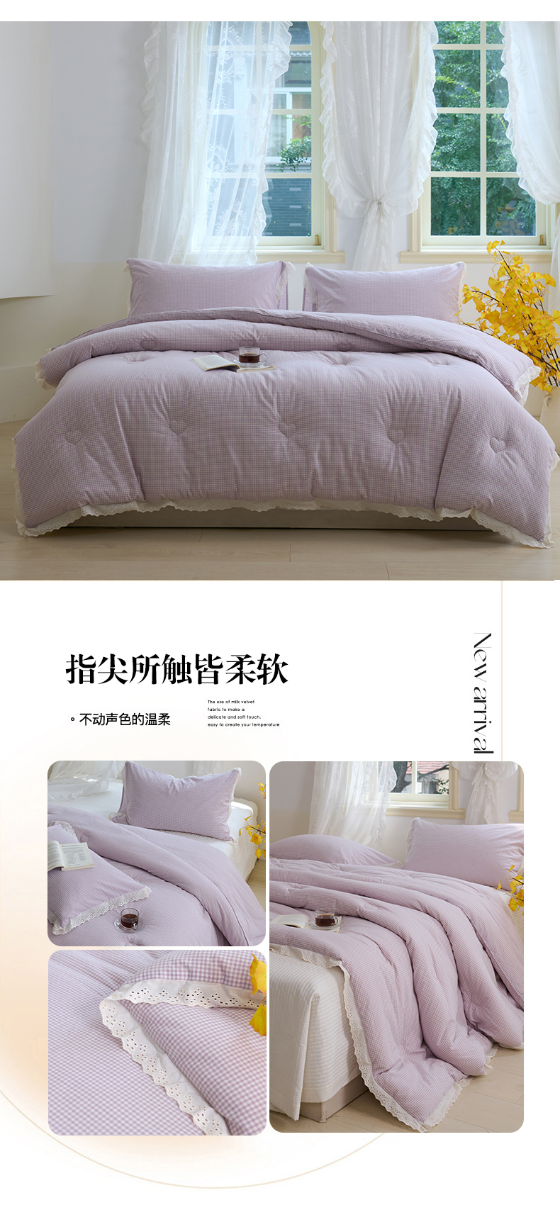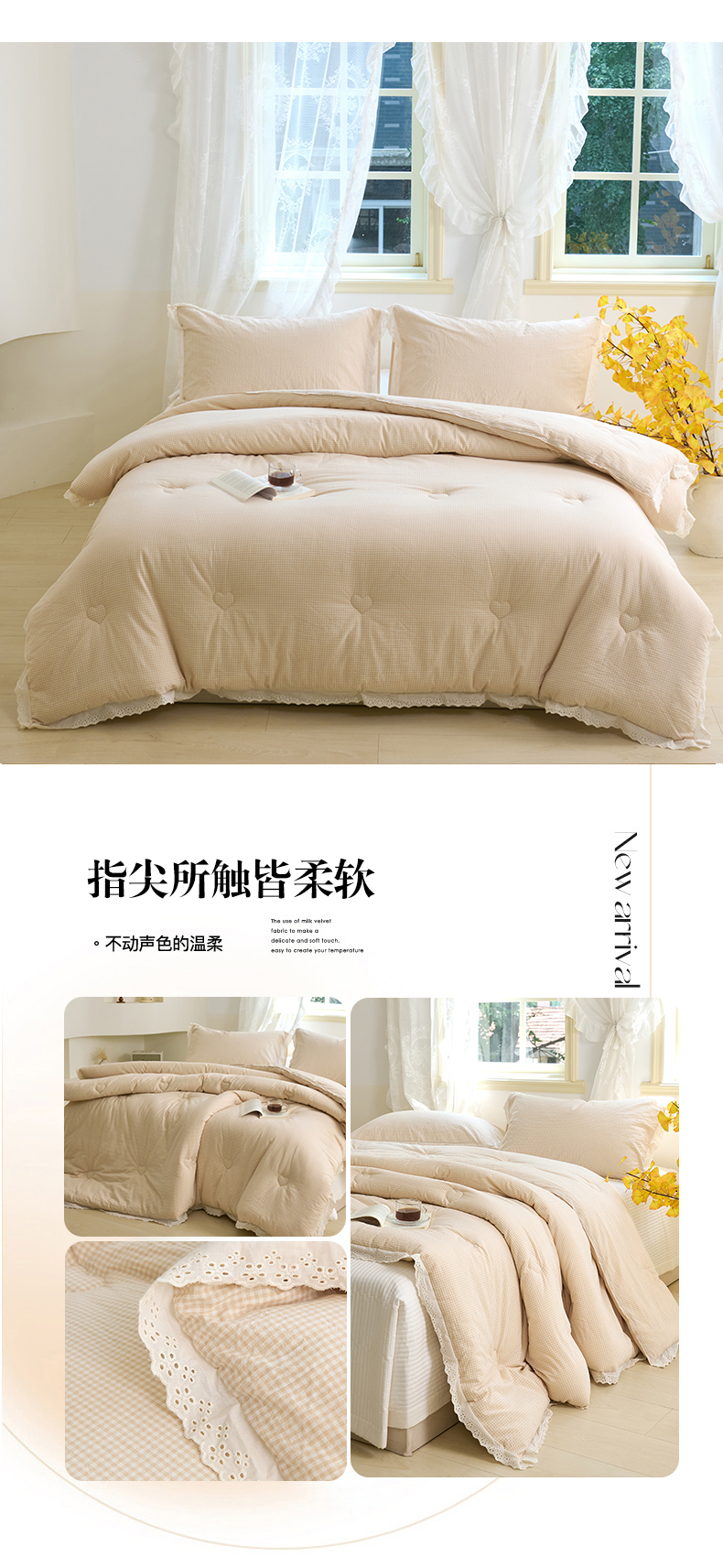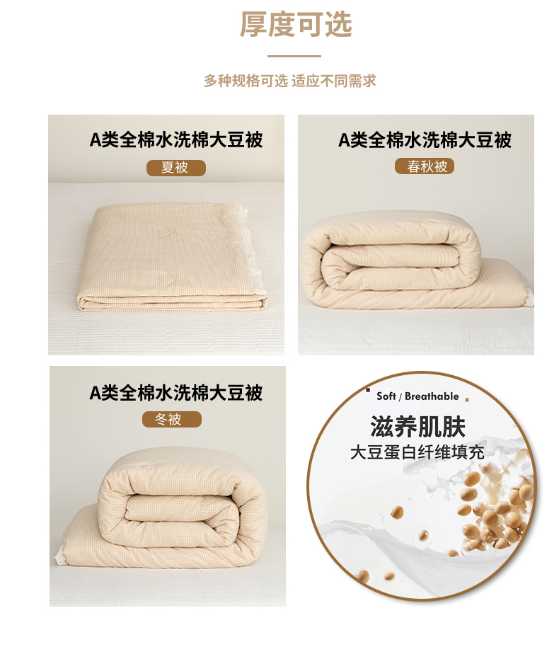• 91家纺网 家纺一手货源 找家纺 久典家居 2024新款A类全棉色织水洗棉花边款大豆被 糖果卡其