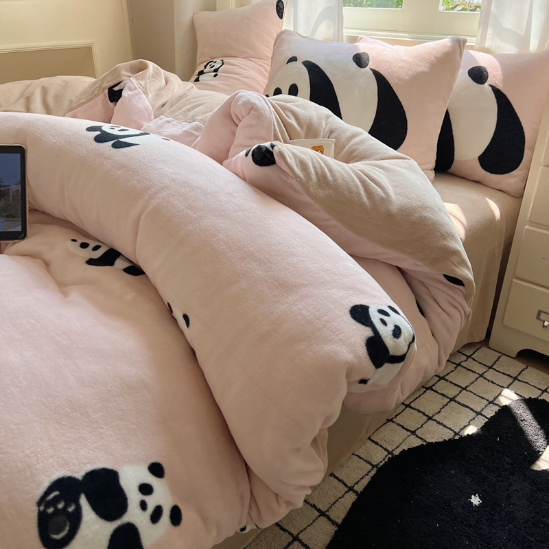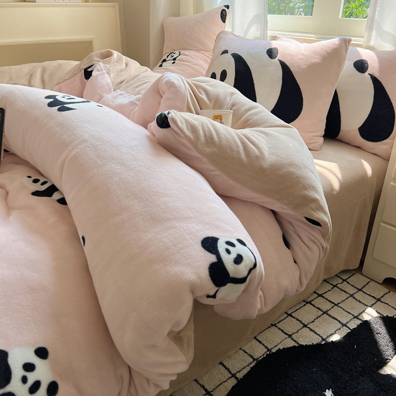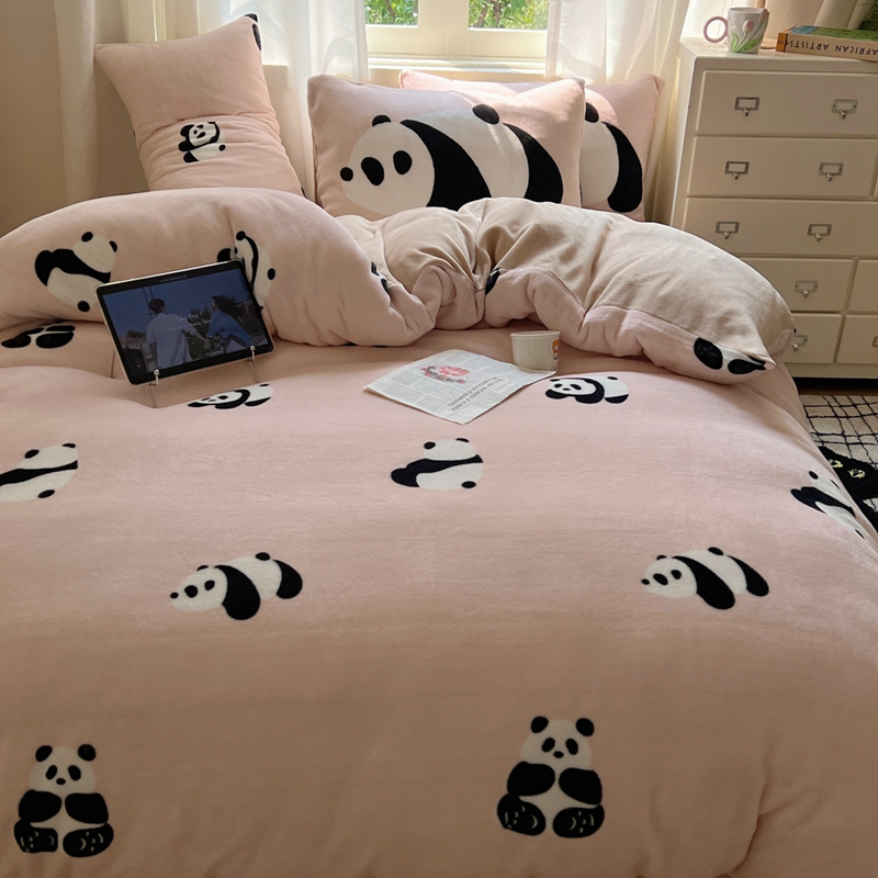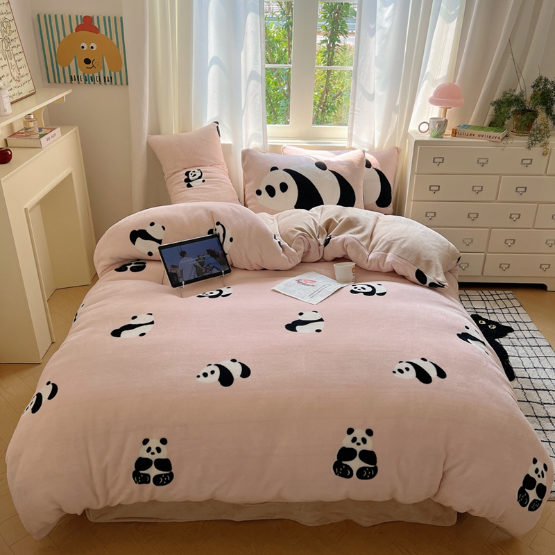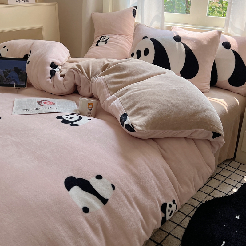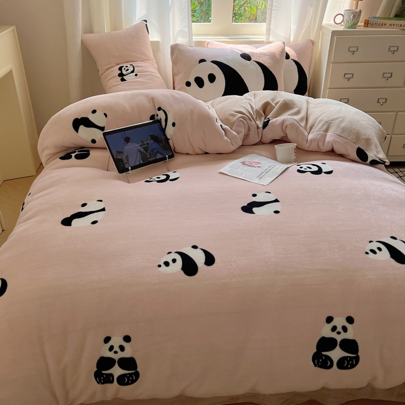 桃喜 2024秋冬新品卡通混搭牛奶绒系列四件套 粉红小熊猫