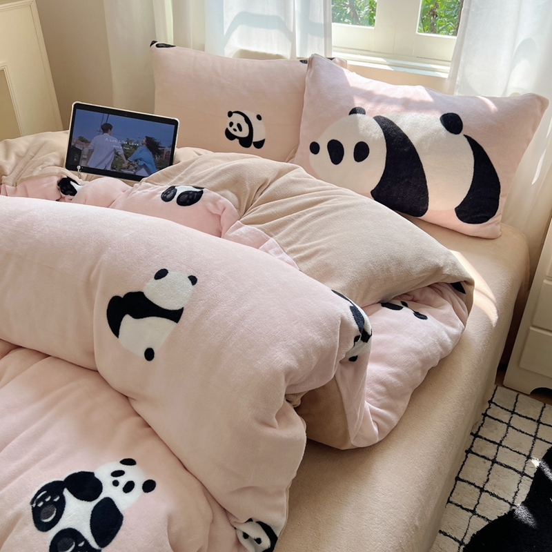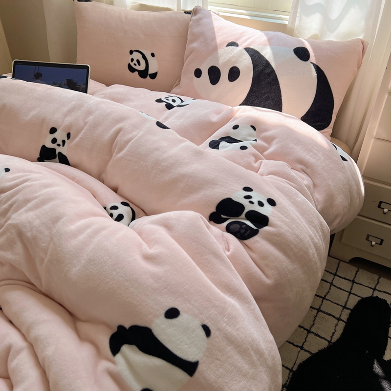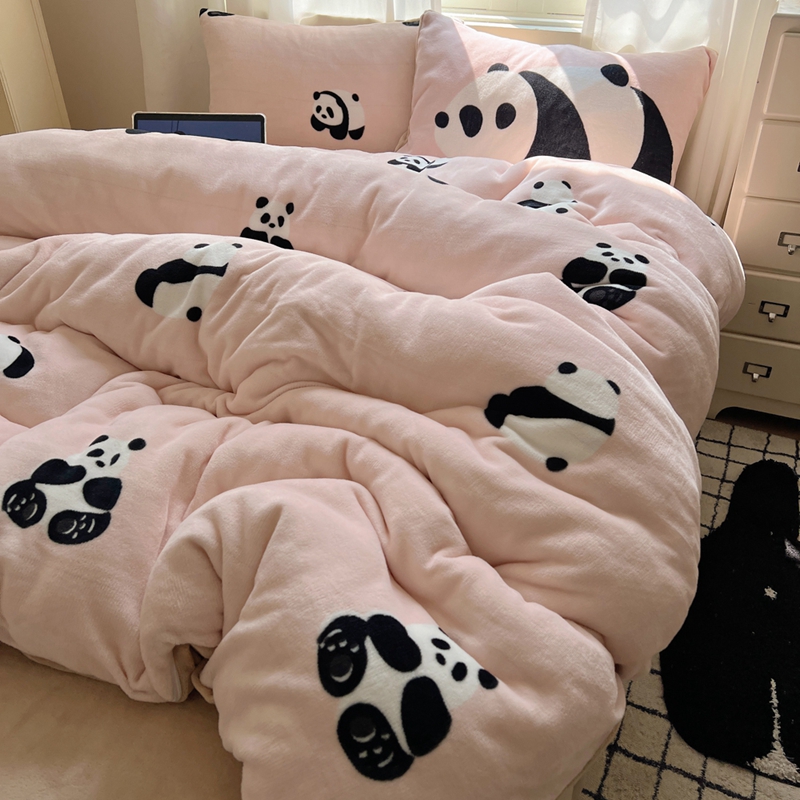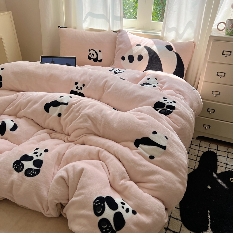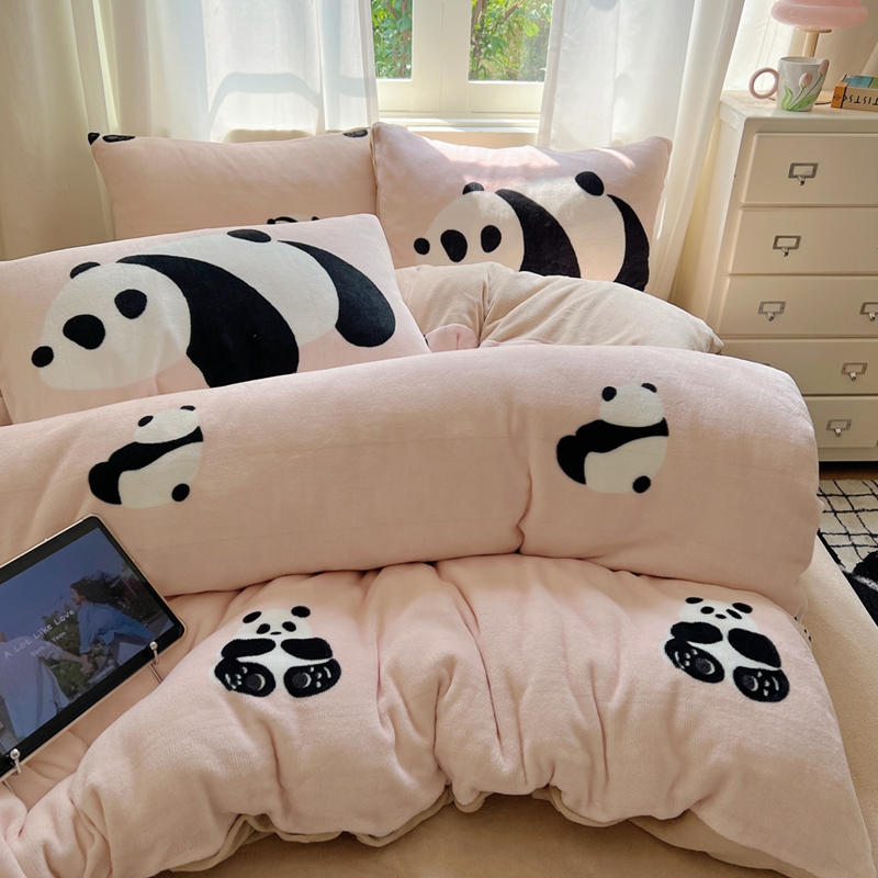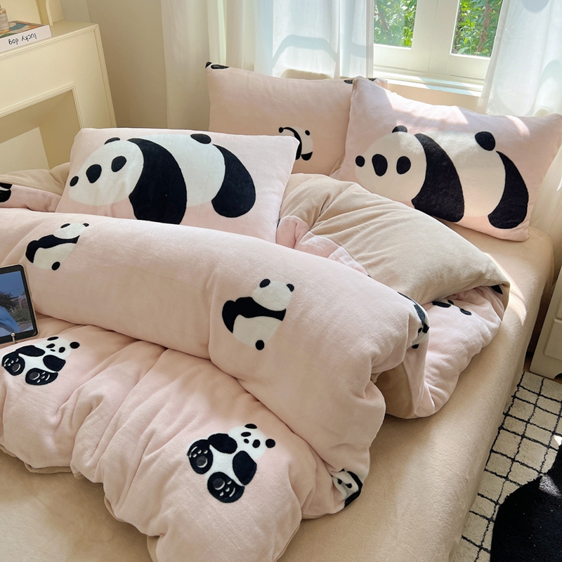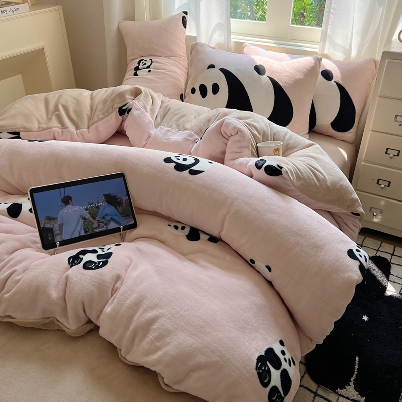 桃喜 2024秋冬新品卡通混搭牛奶绒系列四件套 粉红小熊猫