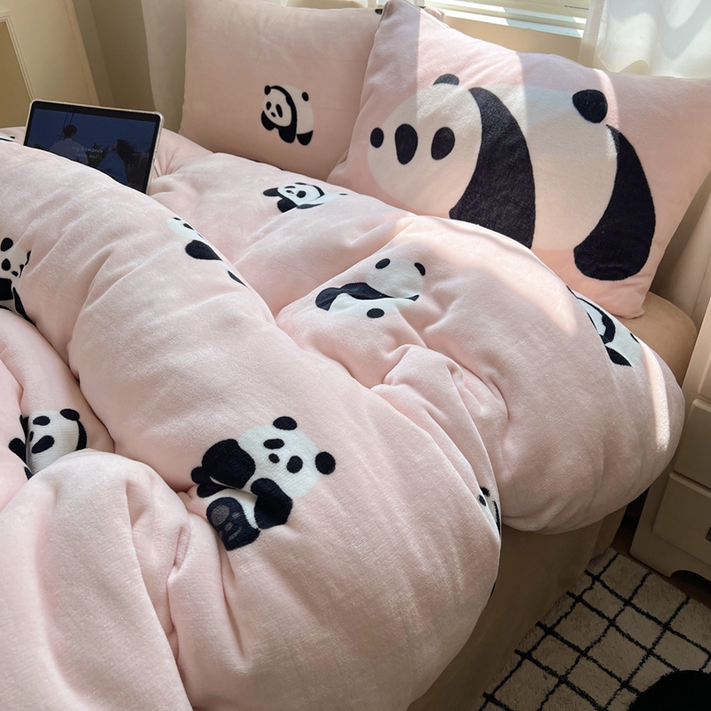 商品名称:桃喜 2024秋冬新品卡通混搭牛奶绒系列四件套 粉红小熊猫