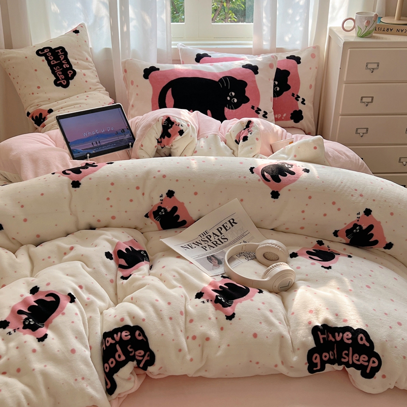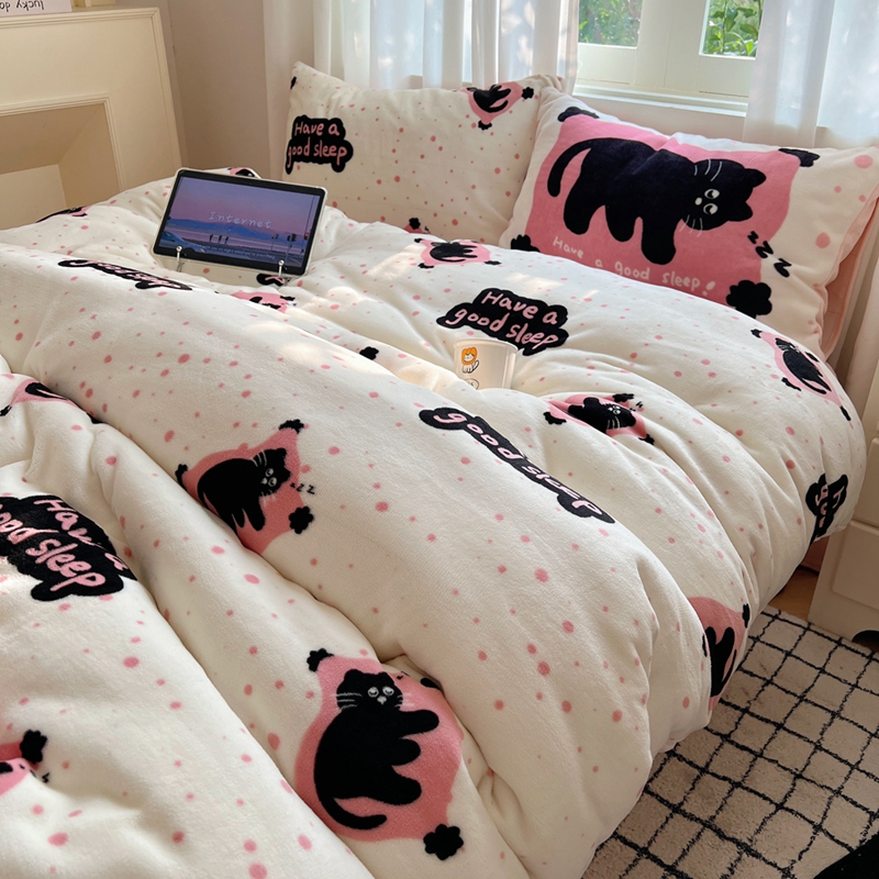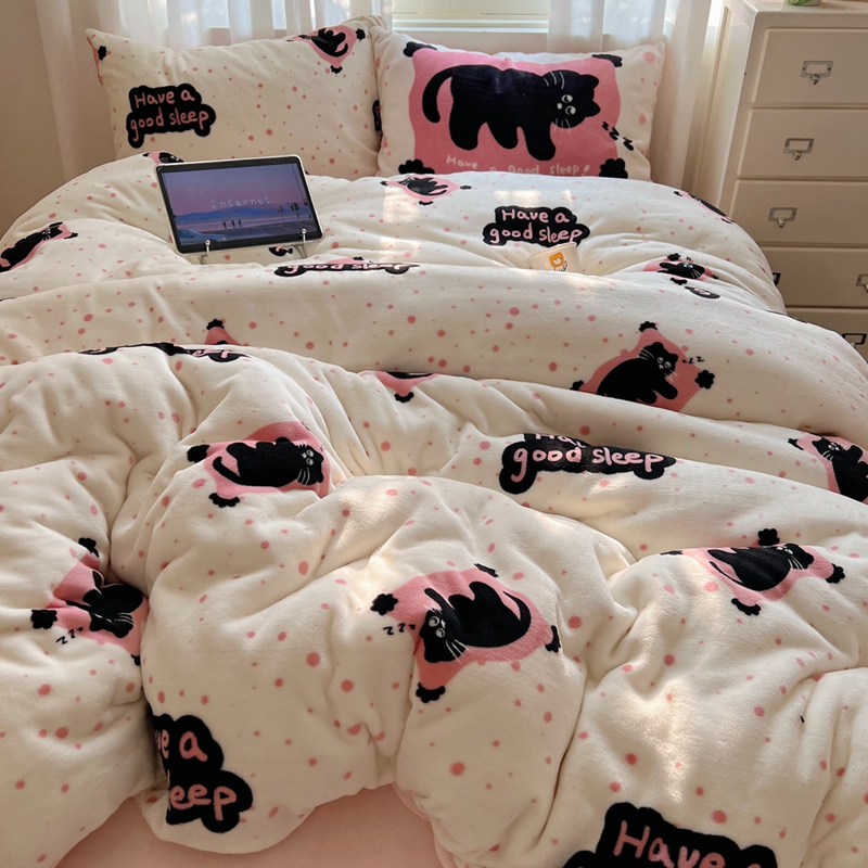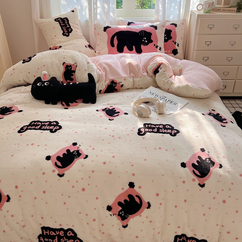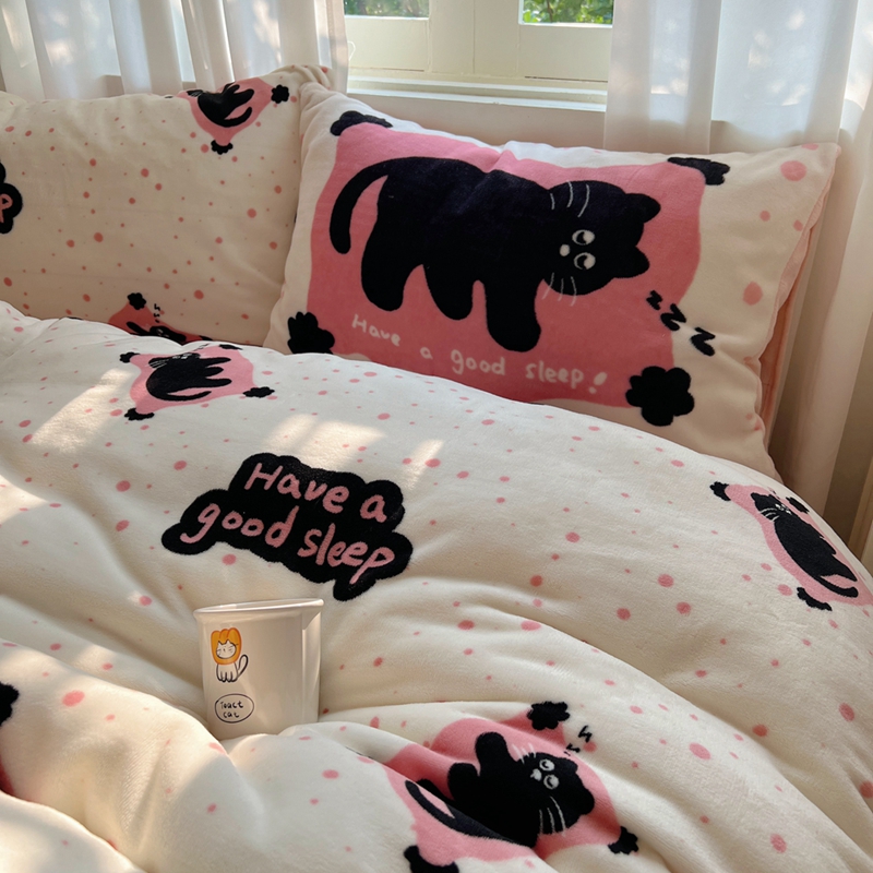 桃喜 2024秋冬新品卡通混搭牛奶绒系列四件套 睡觉小黑猫