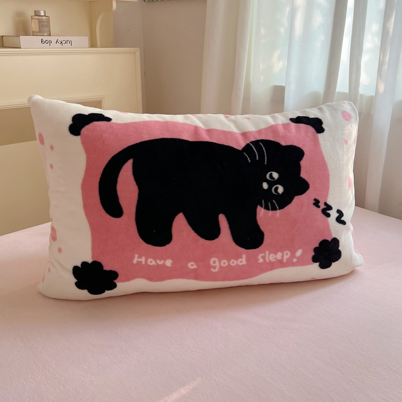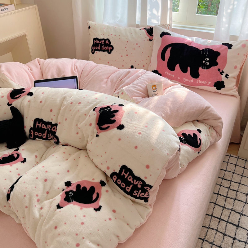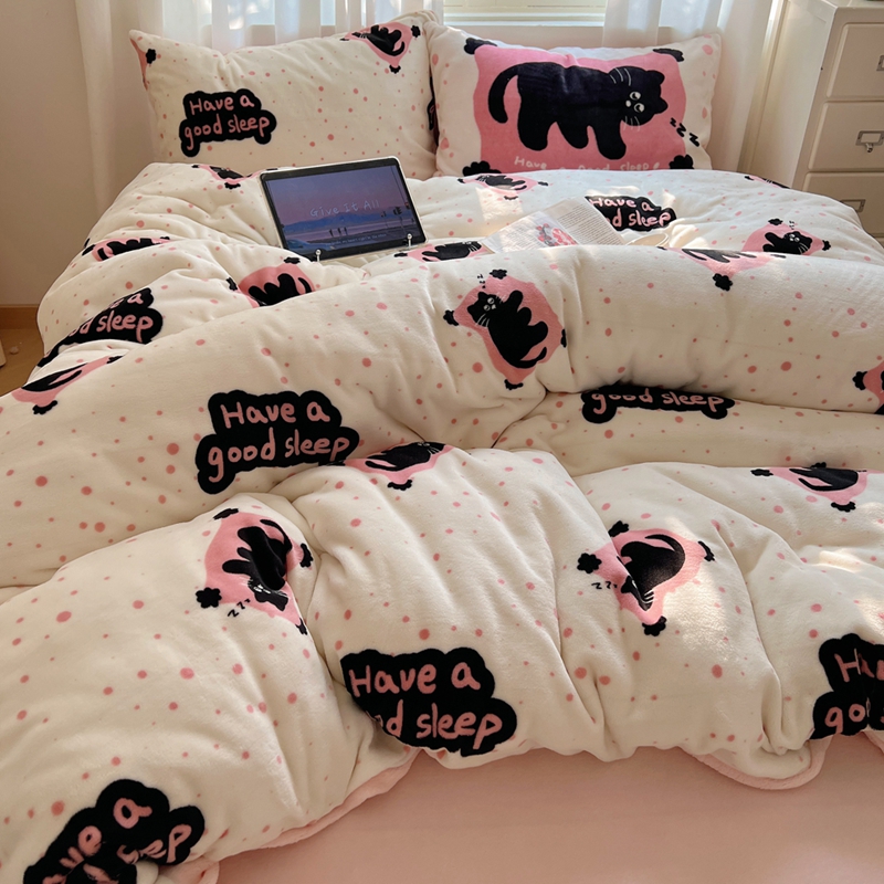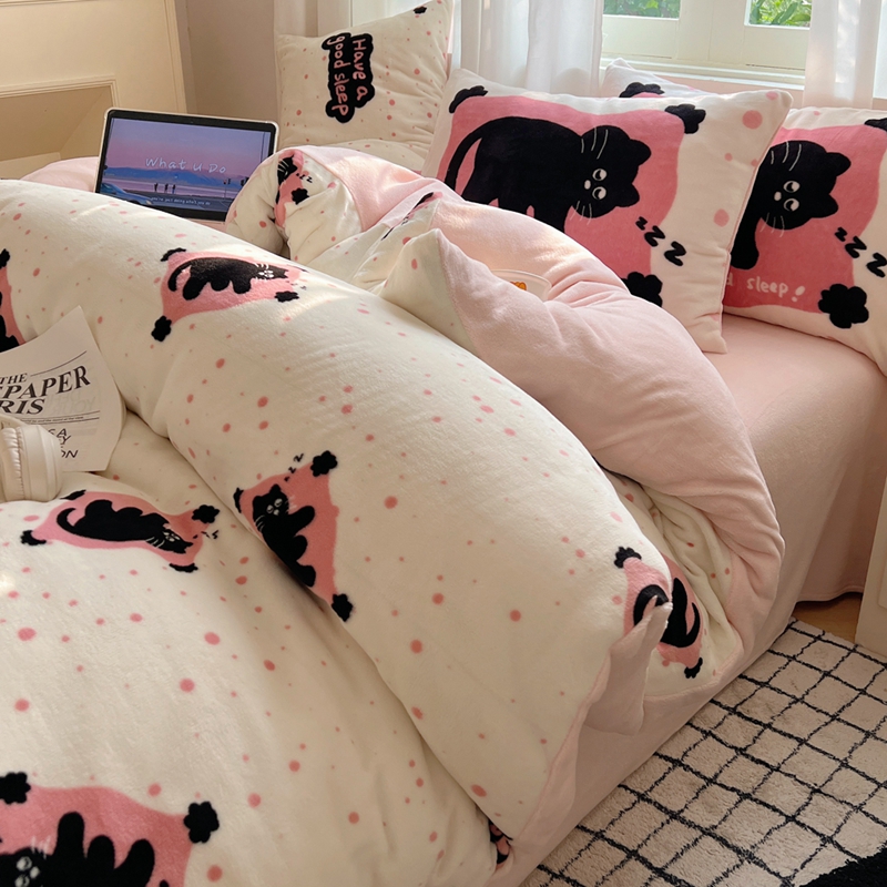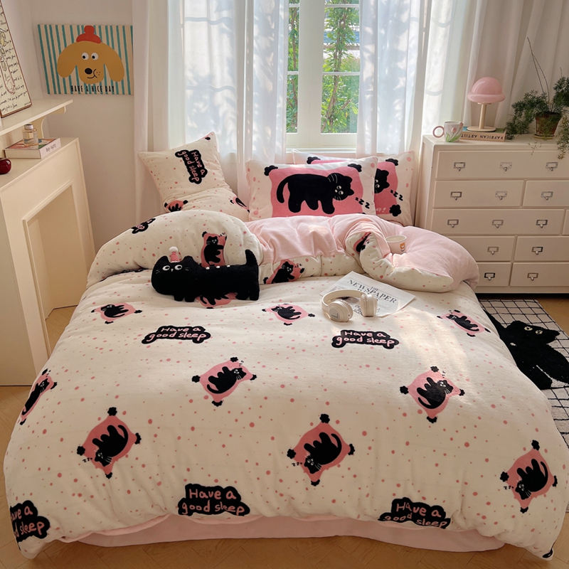 桃喜 2024秋冬新品卡通混搭牛奶绒系列四件套 睡觉小黑猫