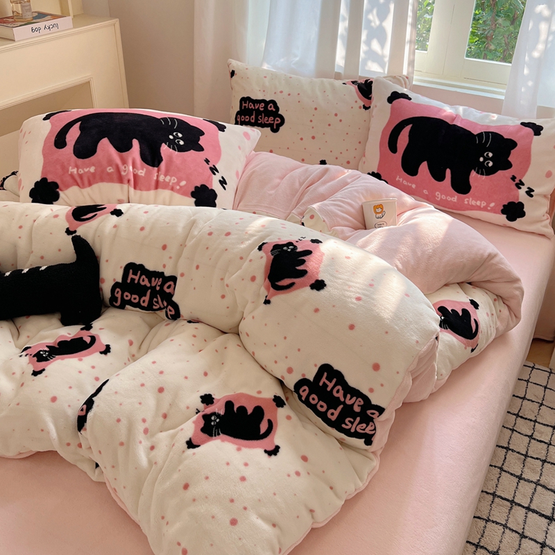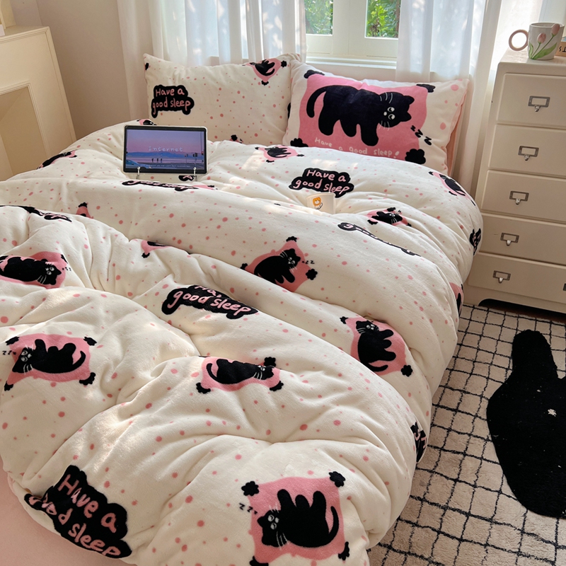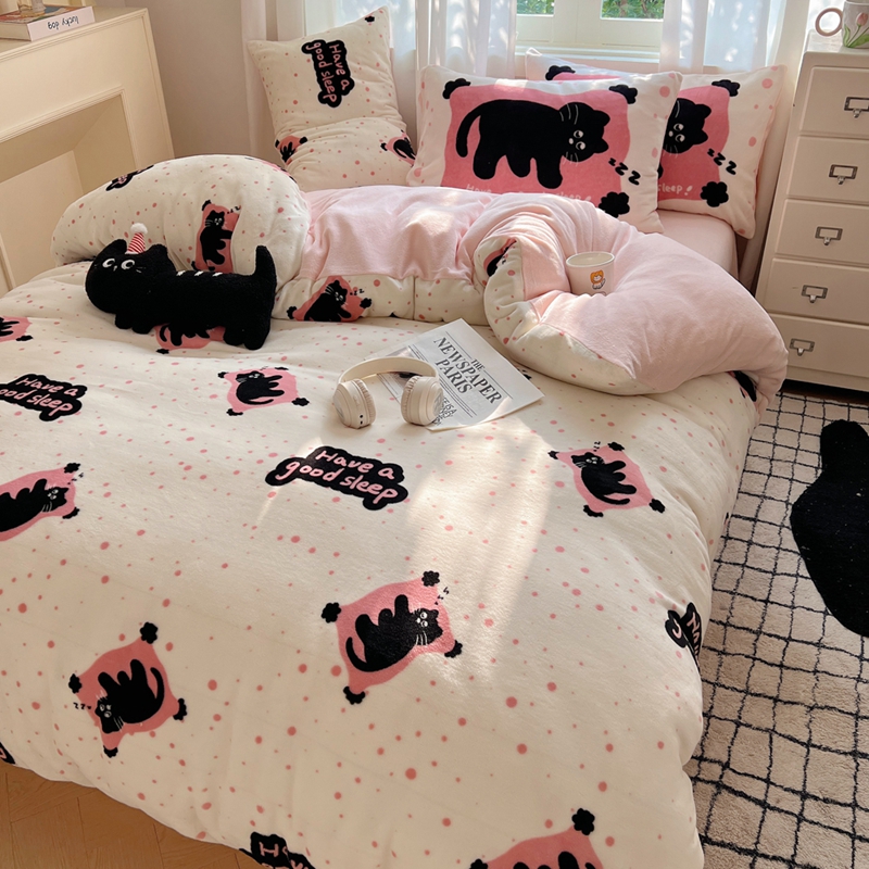 商品名称:桃喜 2024秋冬新品卡通混搭牛奶绒系列四件套 睡觉小黑猫