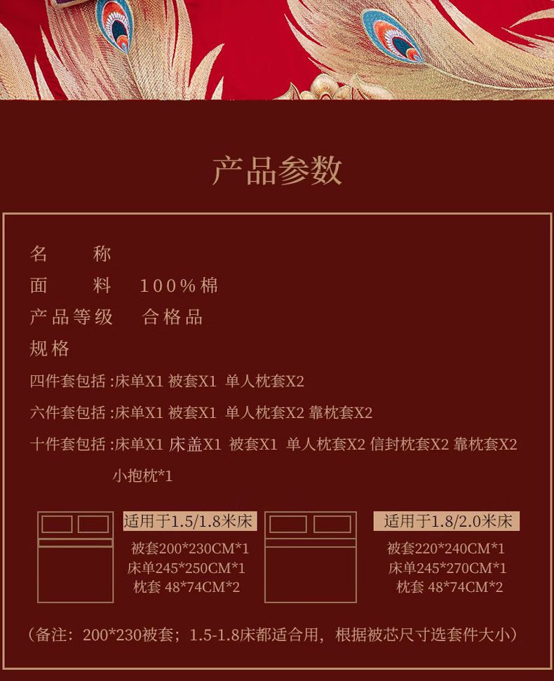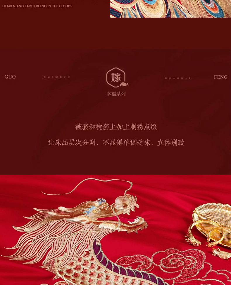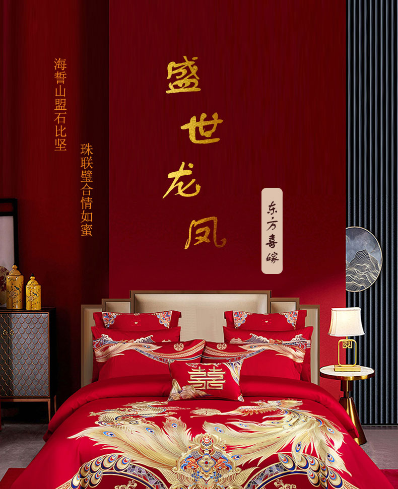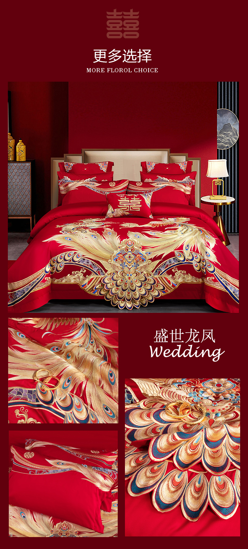 当前位置: 91家纺网 > 商品网购 > 床品套件 > 四件套 > 婚庆四件套 > 蒂爵 全棉纯棉1长绒棉刺绣高端贡缎新中式工艺款婚庆四件套多件套 盛世龙凤