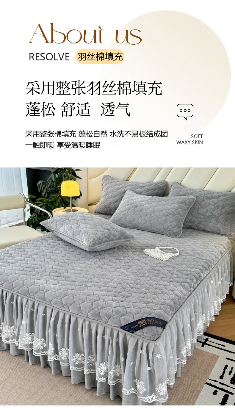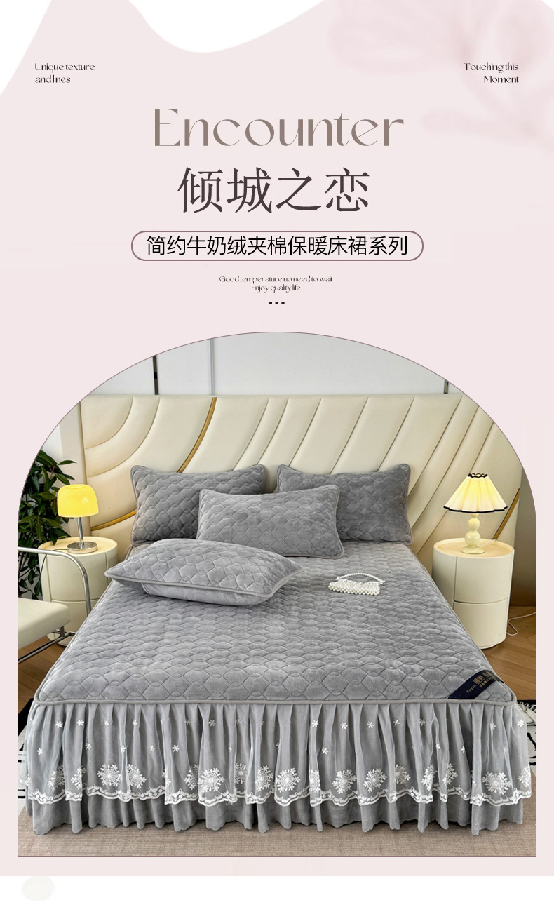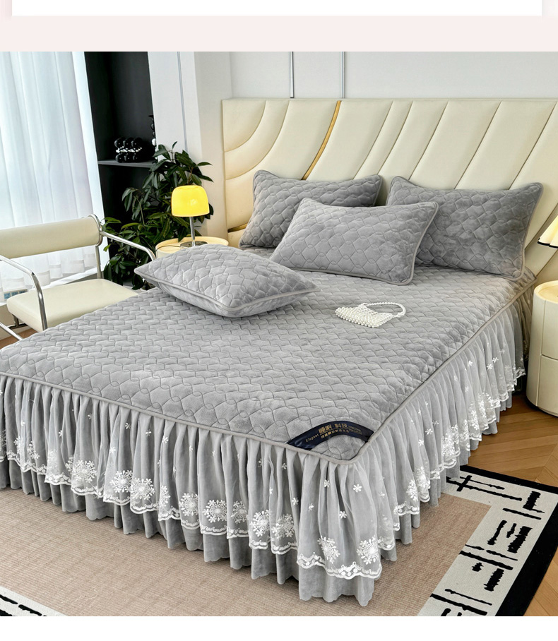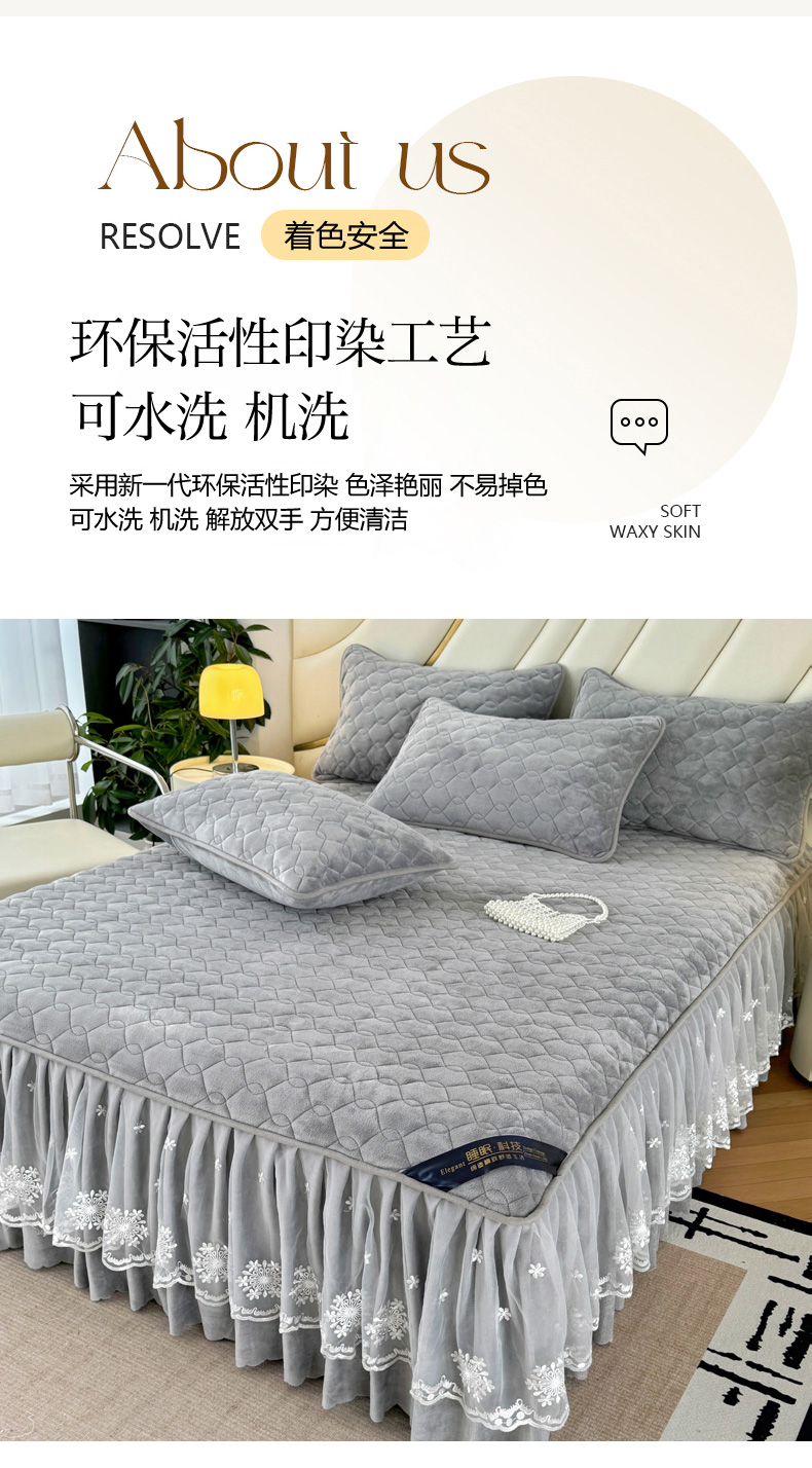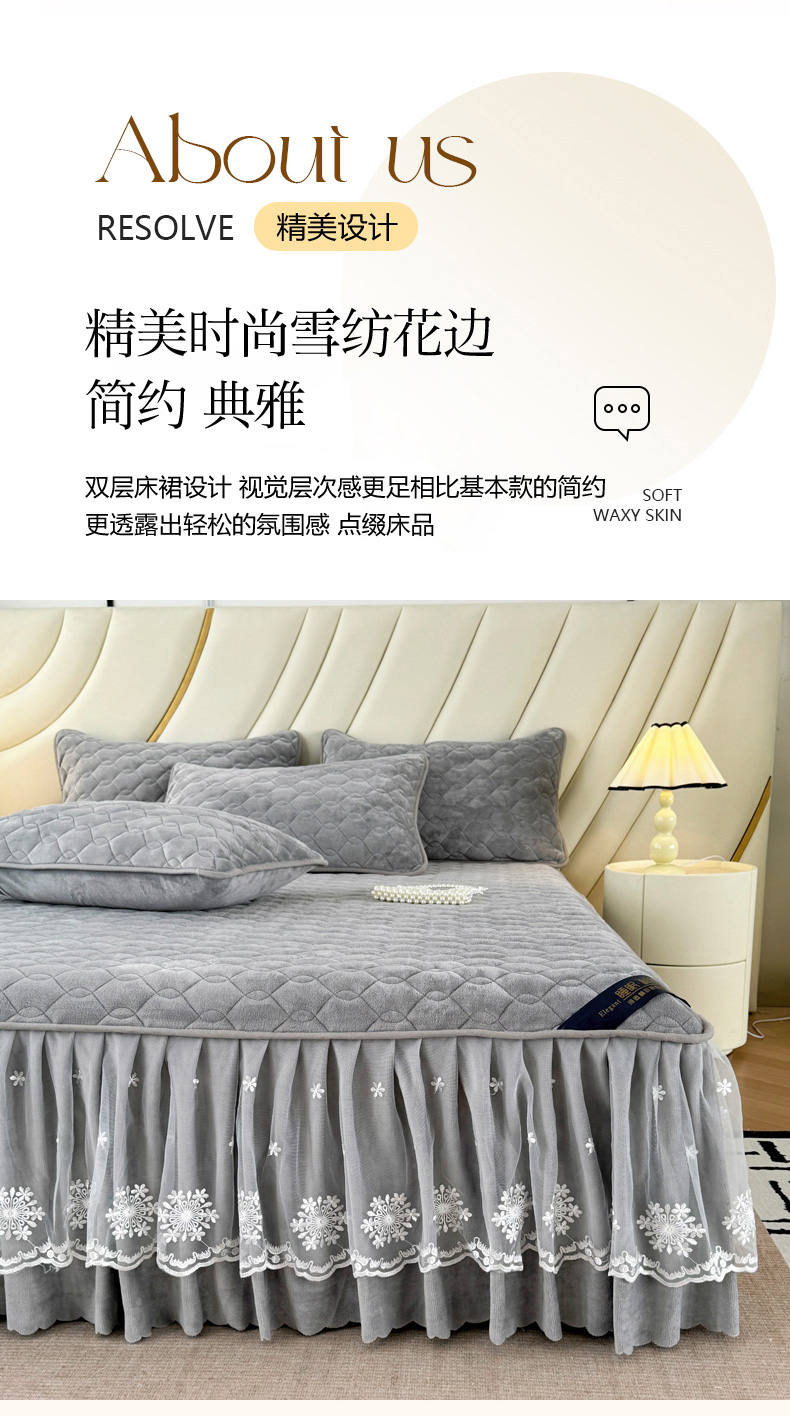 • 91家纺网 家纺一手货源 找家纺 品乐家纺 2024新款简约牛奶绒夹棉保暖床裙 银灰
