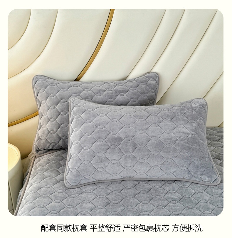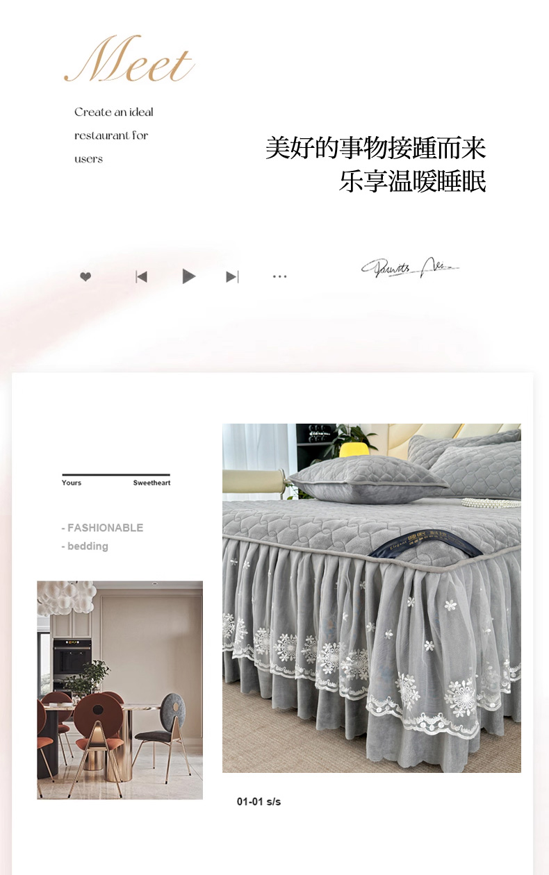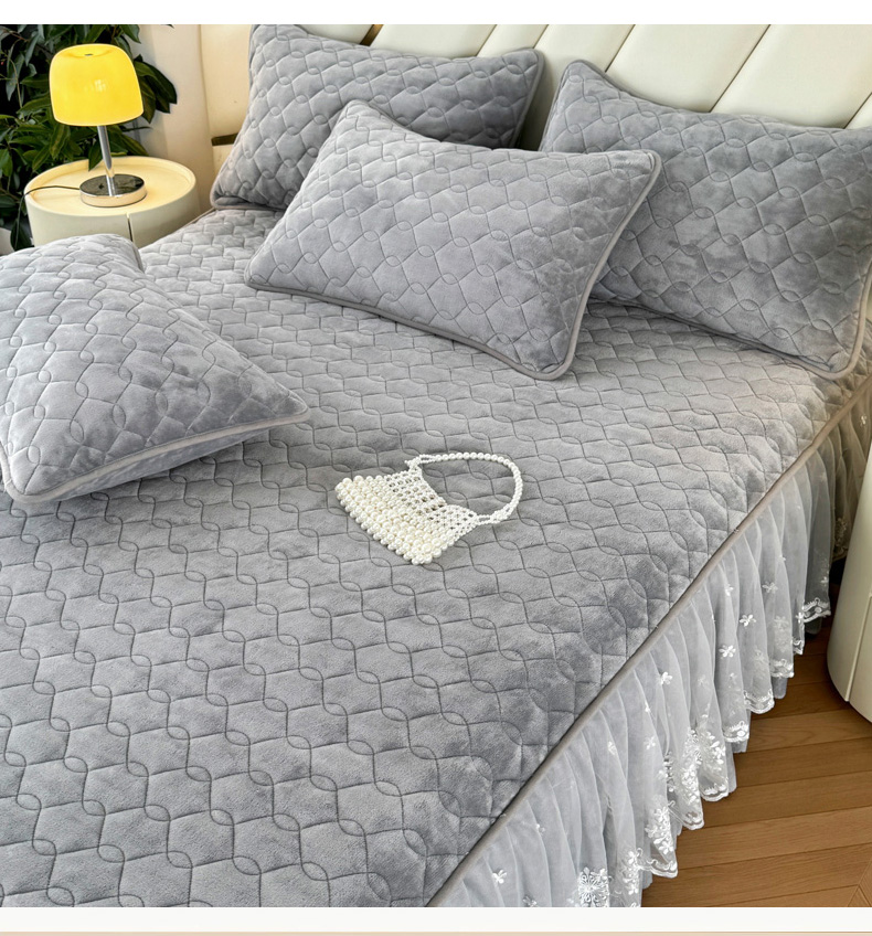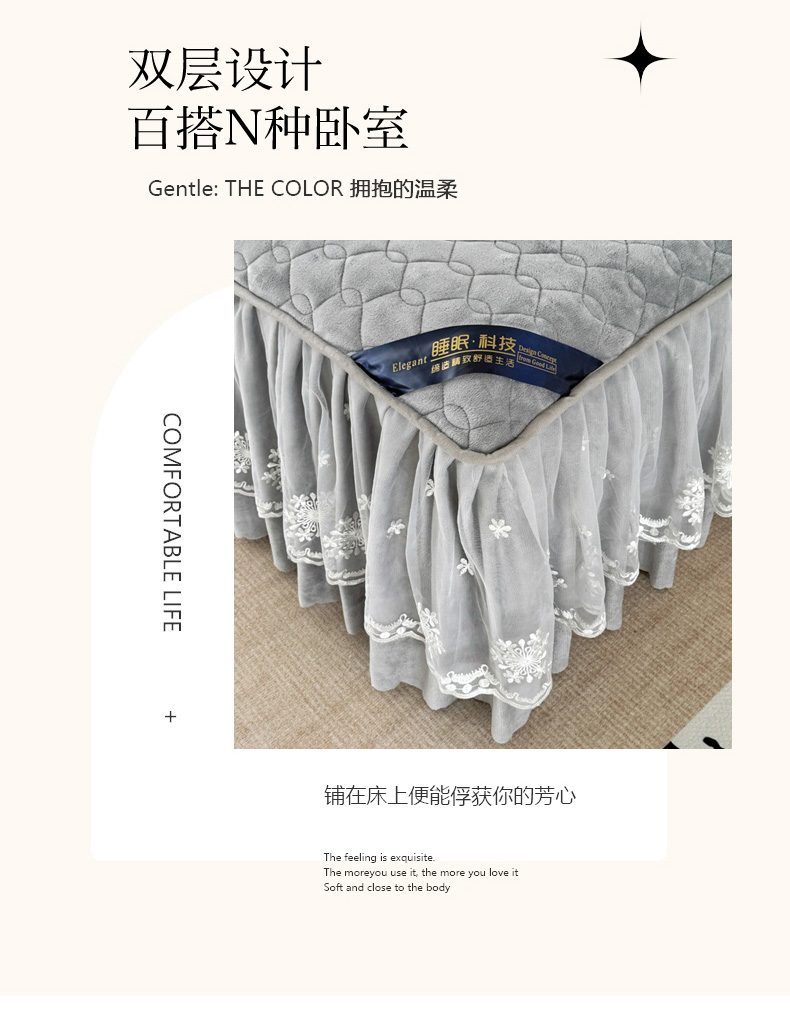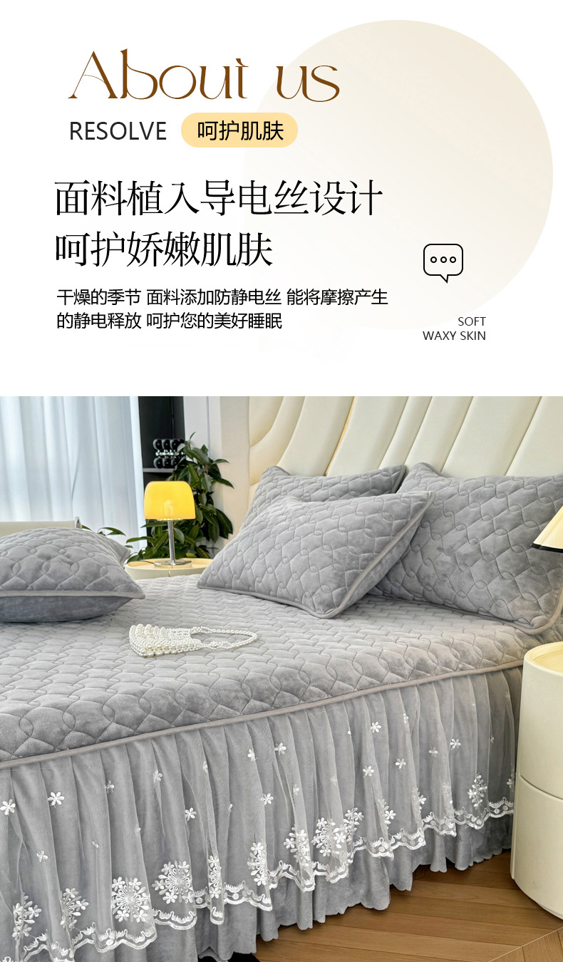 • 91家纺网 家纺一手货源 找家纺 品乐家纺 2024新款简约牛奶绒夹棉保暖床裙 银灰