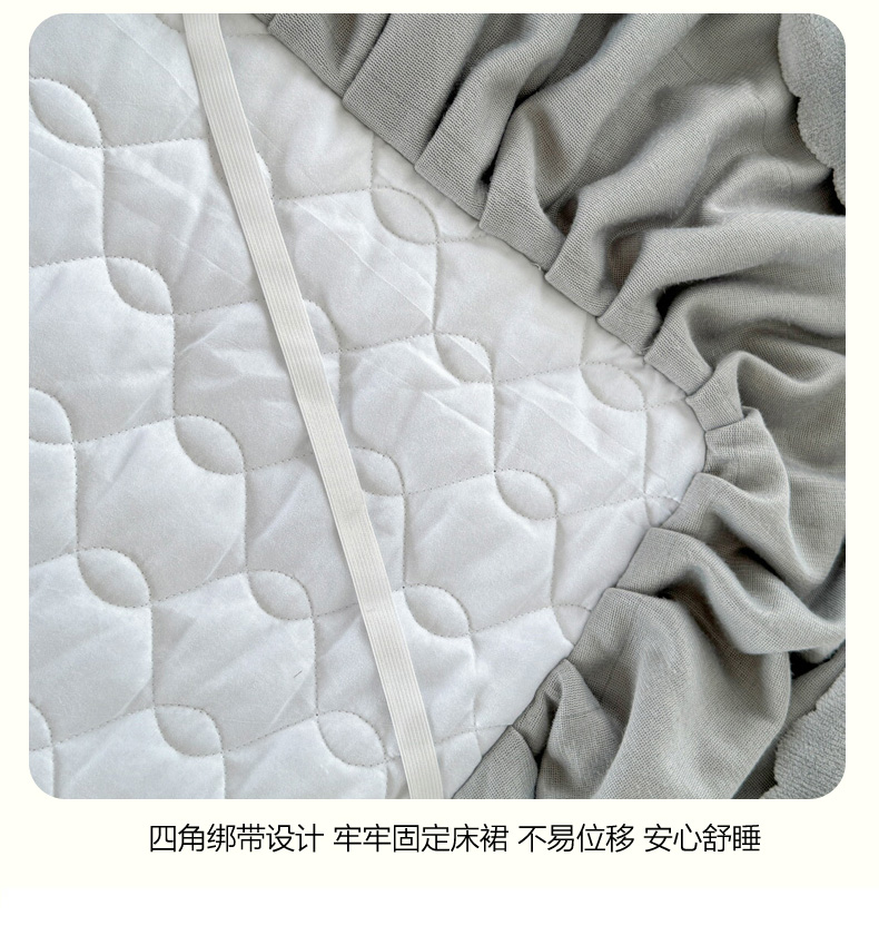 品乐家纺 2024新款简约牛奶绒夹棉保暖床裙 银灰