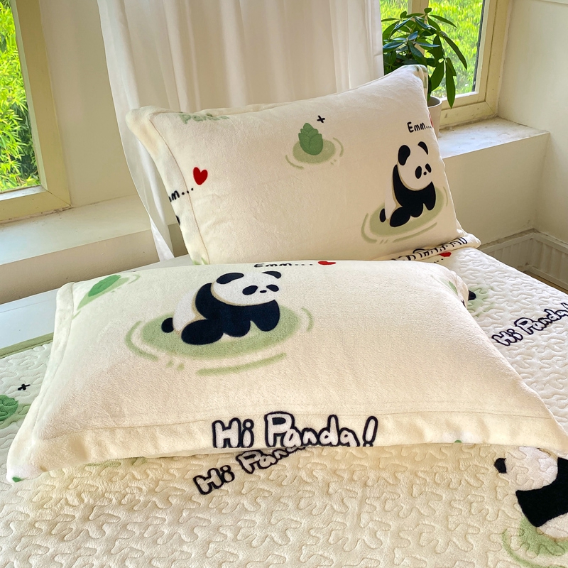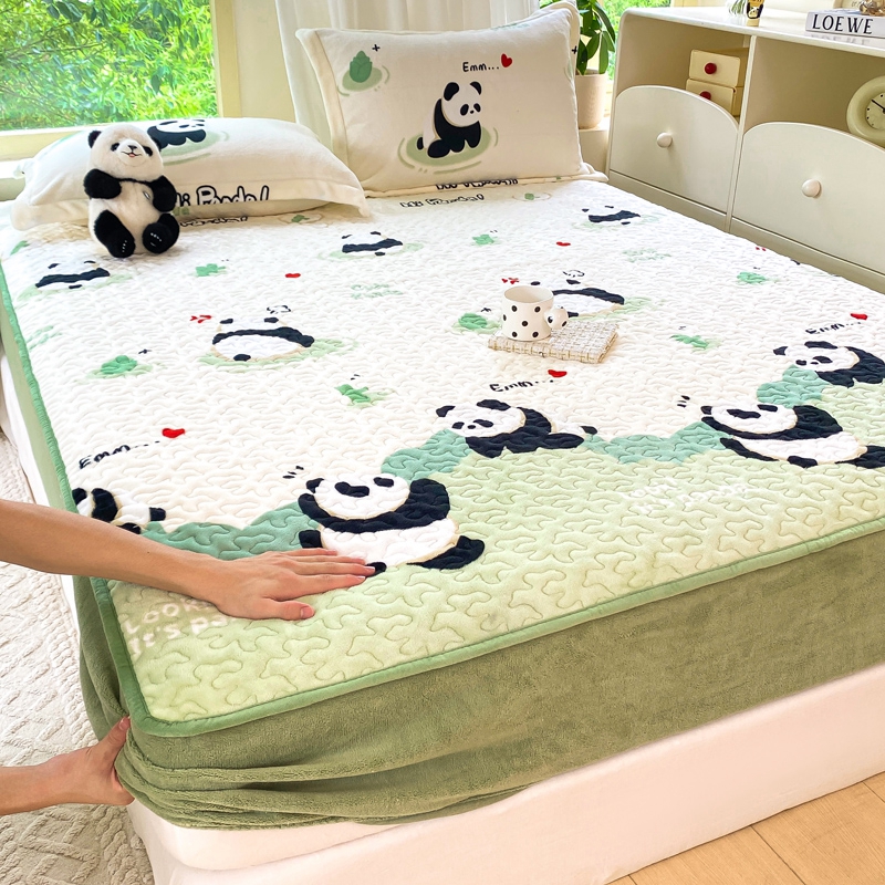 赫梵茜 2024新款高克重安抚豆豆被套牛奶绒夹棉床笠四件套 熊猫乐园