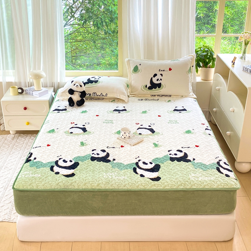 • 91家纺网 家纺一手货源 找家纺 赫梵茜 2024新款高克重安抚豆豆被套牛奶绒夹棉床笠四件套 熊猫乐园