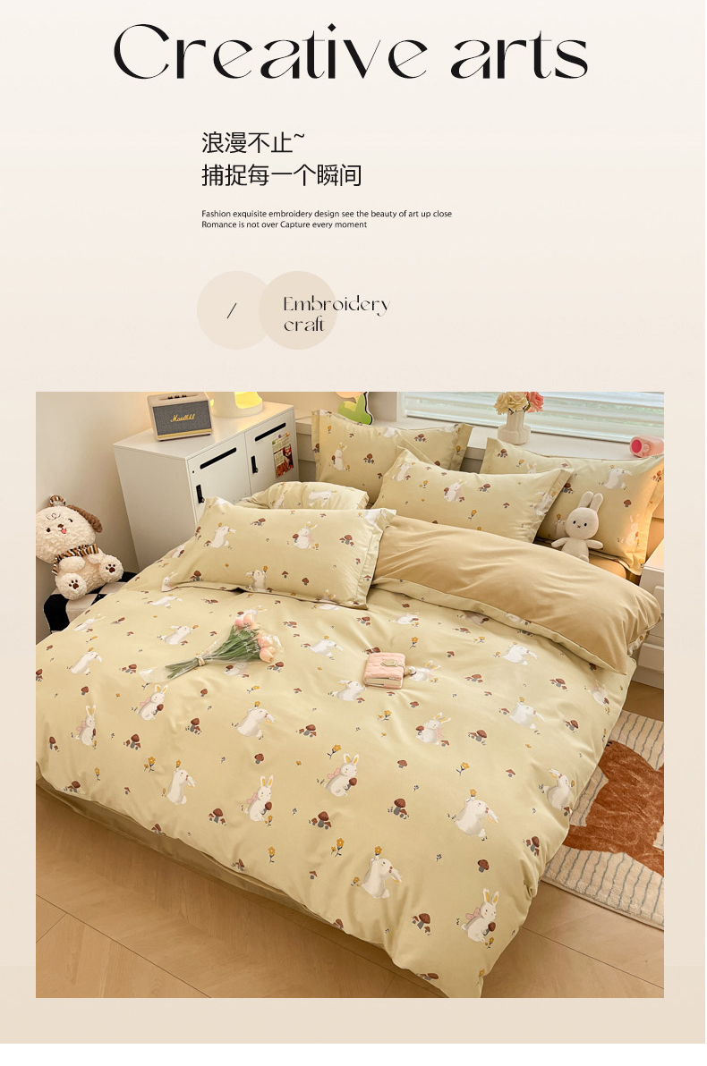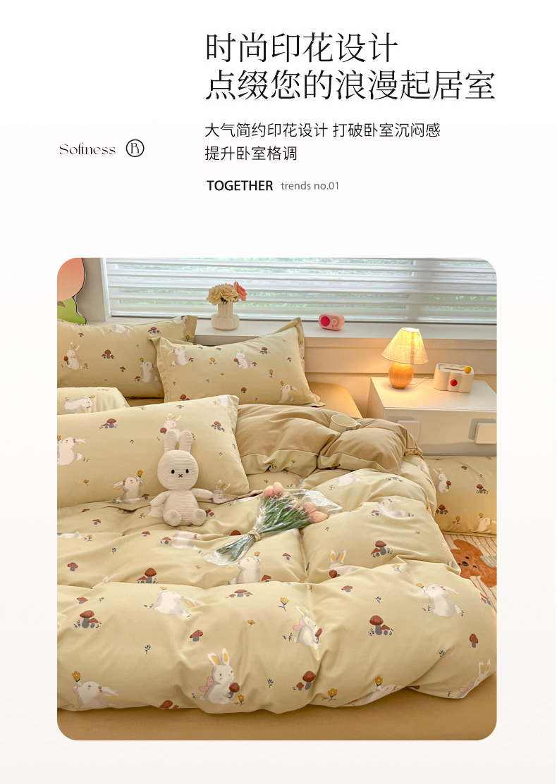 慕尚家纺 2025新款原棉磨毛四件套单被套系列-单被套 蘑菇小兔