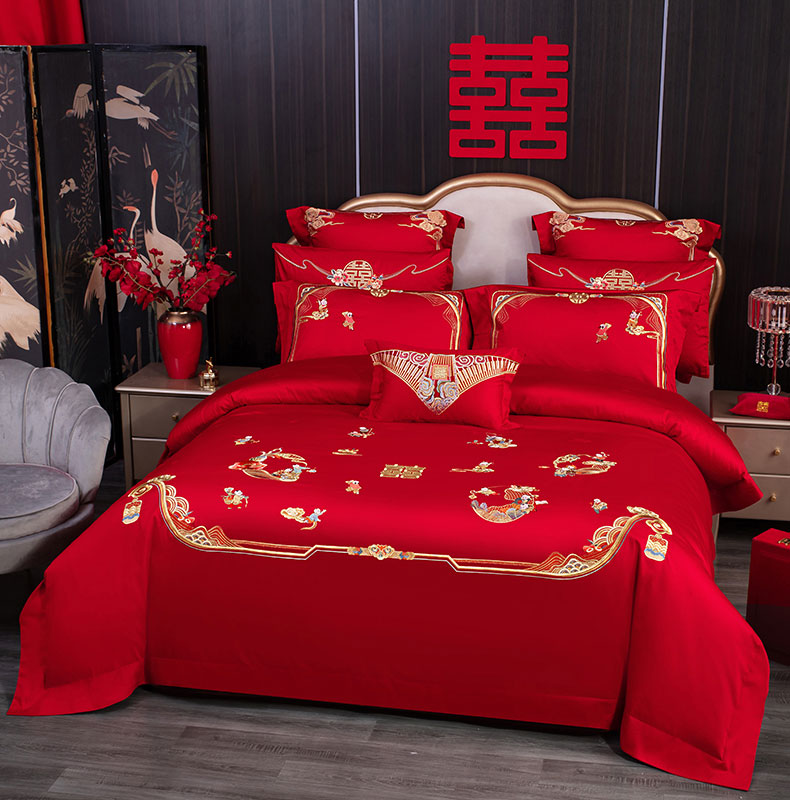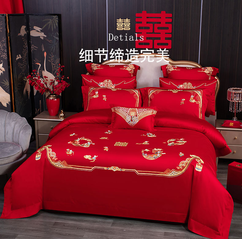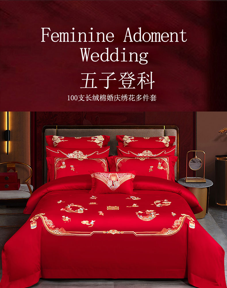 当前位置: 91家纺网 > 商品网购 > 床品套件 > 四件套 > 婚庆四件套 > 蒂爵 全棉纯棉长绒棉时尚绣花婚庆四件套多件套 五子登科