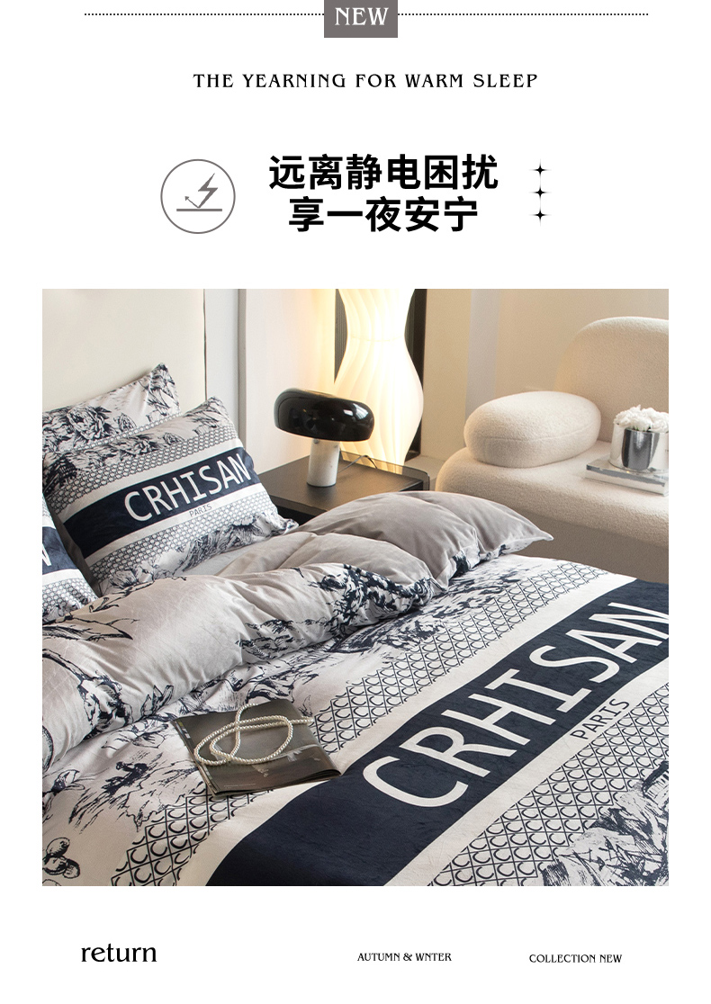 商品名称:色鬼布艺 2024新款婴儿绒数码印花牛奶绒四件套仿大牌直播爆款网红款 插画师