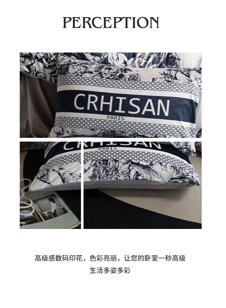 (总)色鬼布艺高端家居主号 2025新款轻奢亲肤纯棉数码印花网红热款四件套,豹纹香,白金V,白香花,大H,黑白迪,黑白V,灰迪,咖古,克莱因,慕斯小姐,山茶花,星空