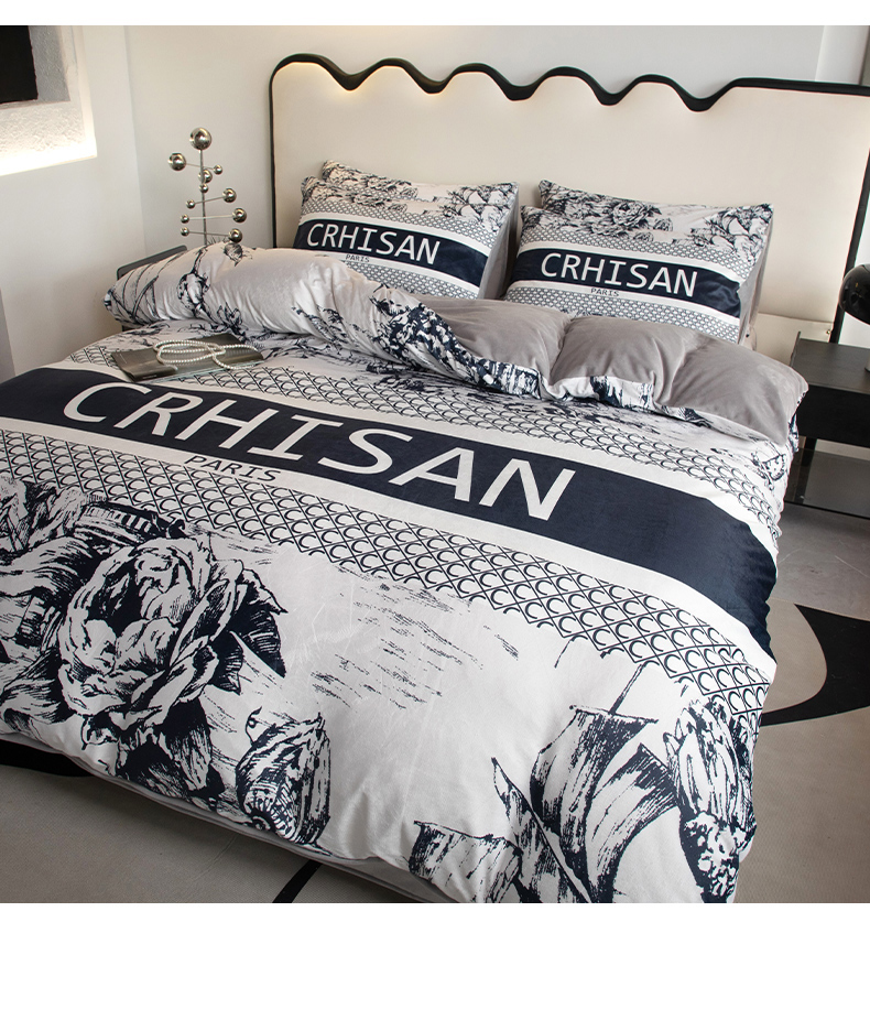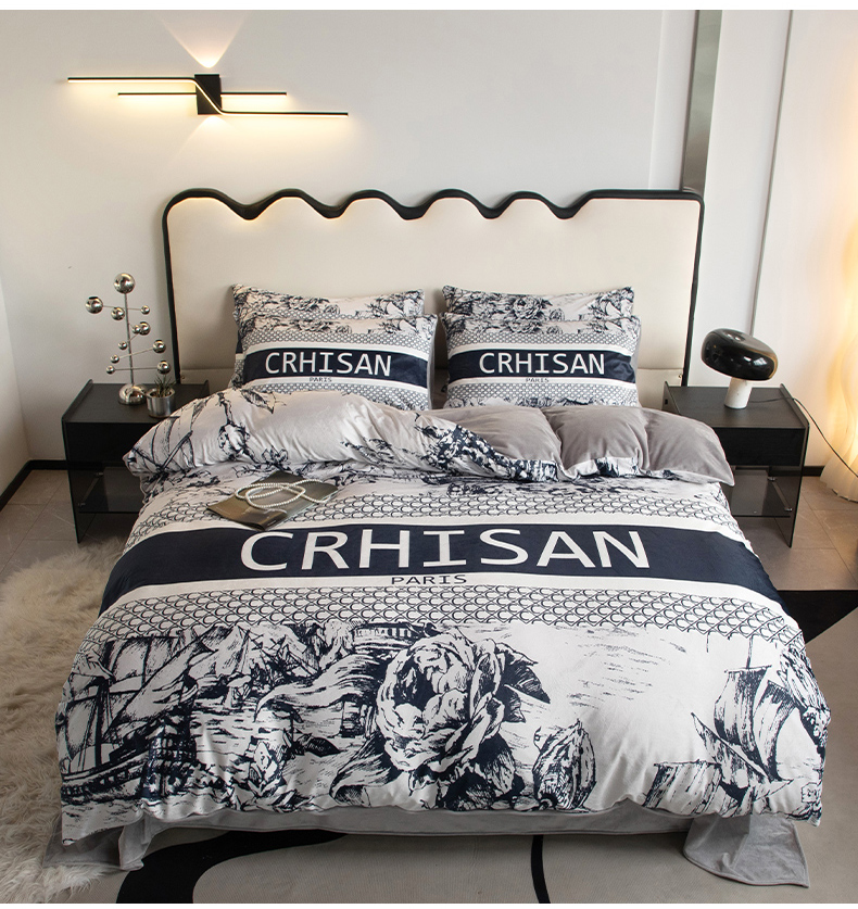 色鬼布艺 2024新款婴儿绒数码印花牛奶绒四件套仿大牌直播爆款网红款 插画师