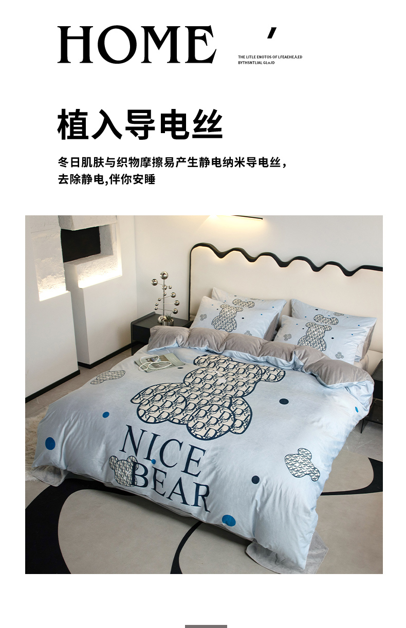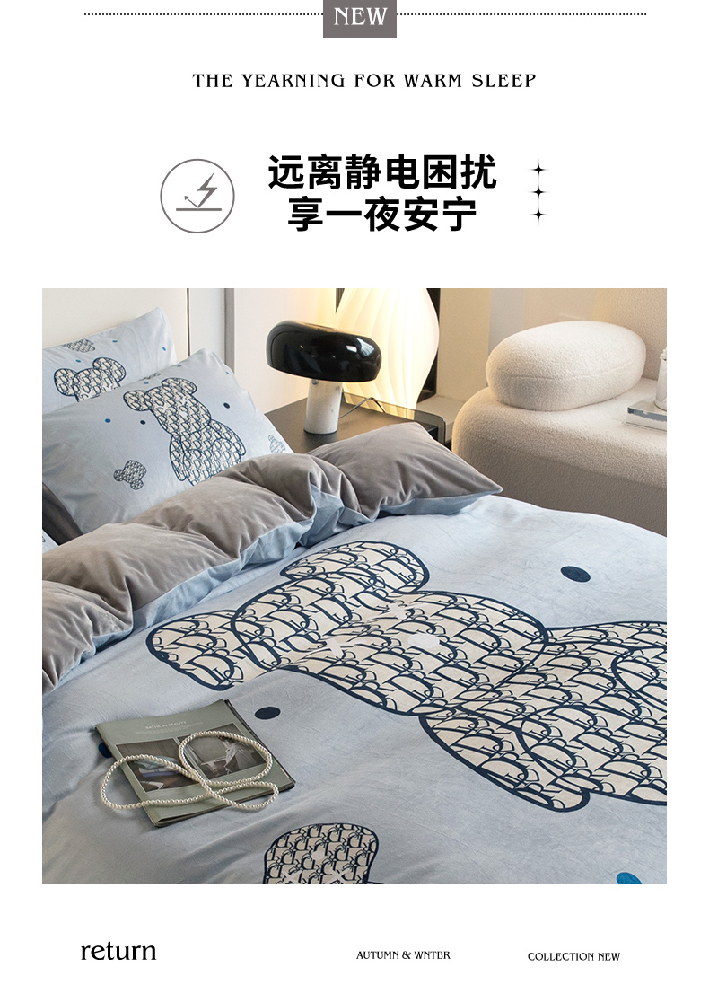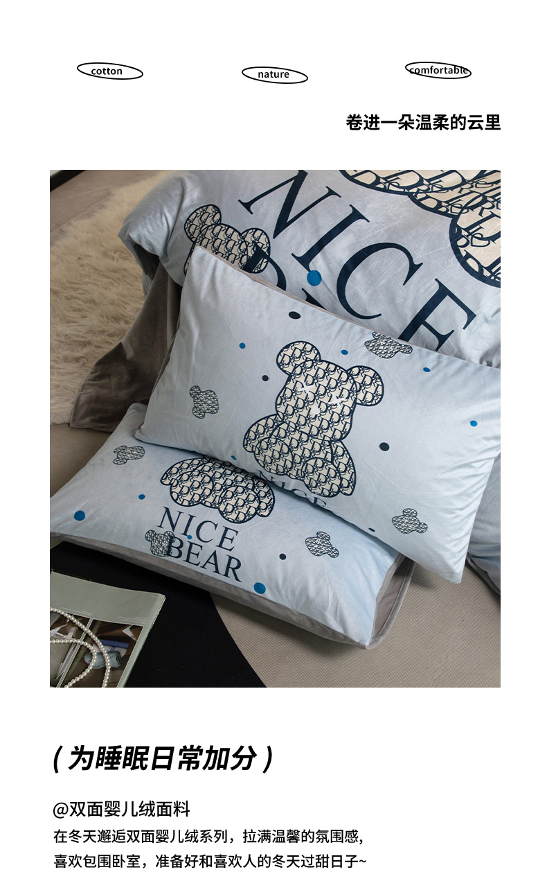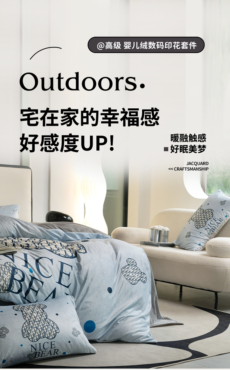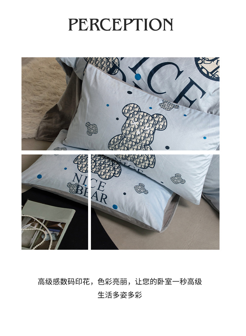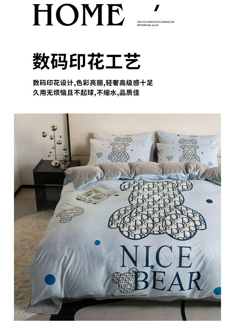 商品名称:色鬼布艺 2024新款婴儿绒数码印花牛奶绒四件套仿大牌直播爆款网红款 萌迪