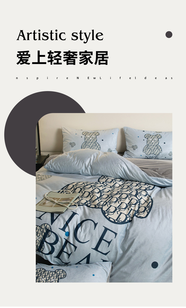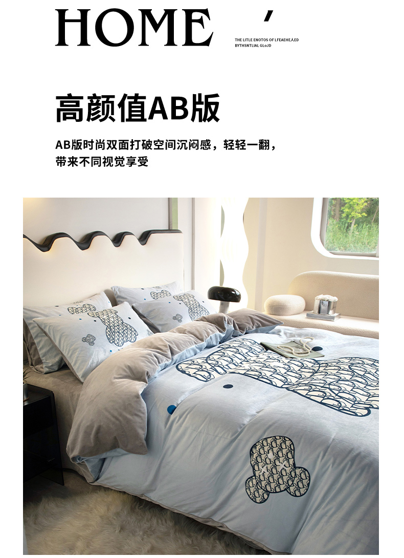 色鬼布艺 2024新款婴儿绒数码印花牛奶绒四件套仿大牌直播爆款网红款 萌迪