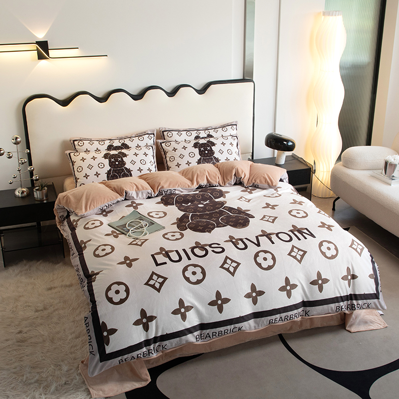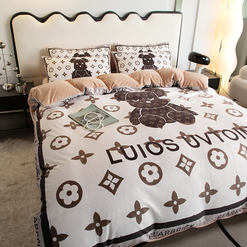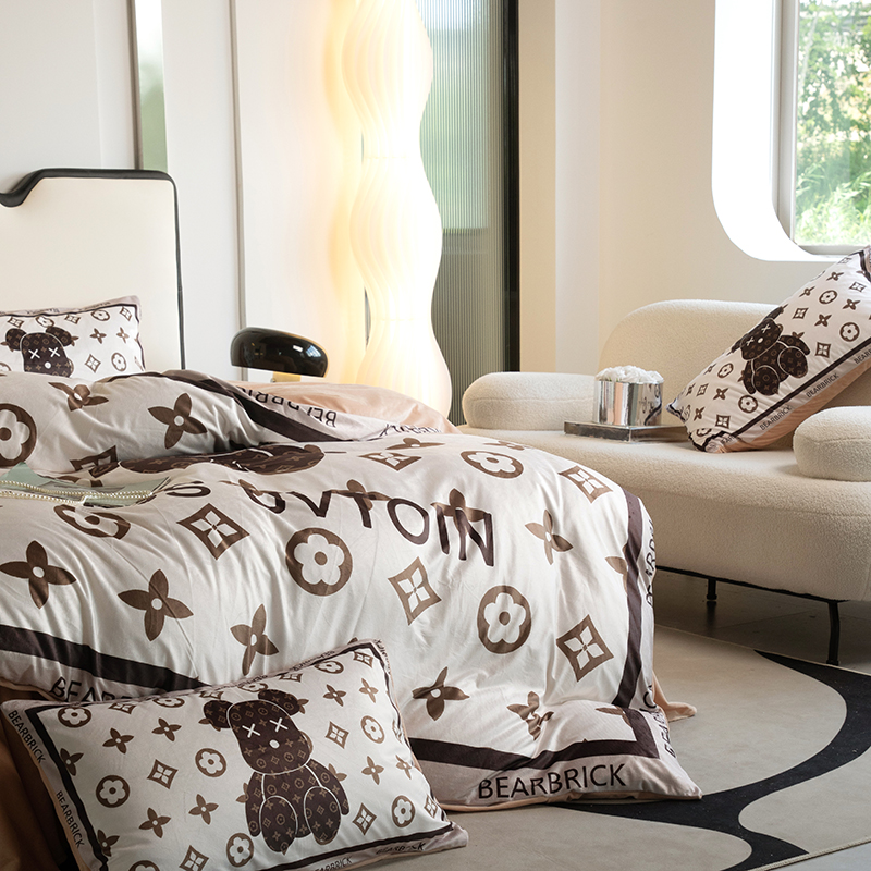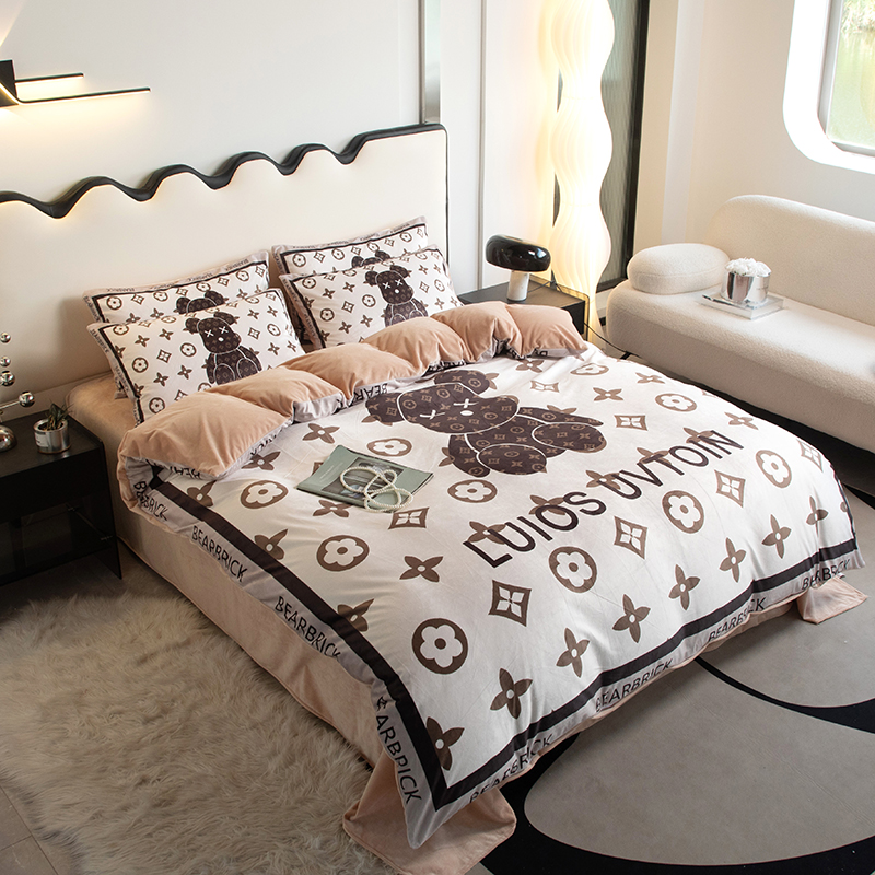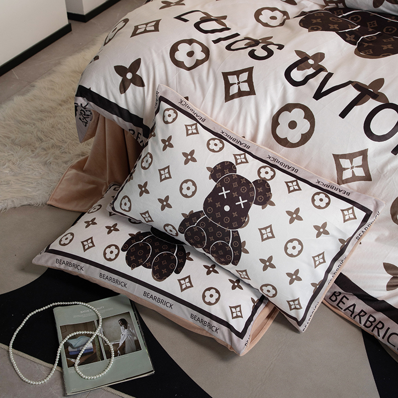 色鬼布艺 2024新款婴儿绒数码印花牛奶绒四件套仿大牌直播爆款网红款 熊仔咖