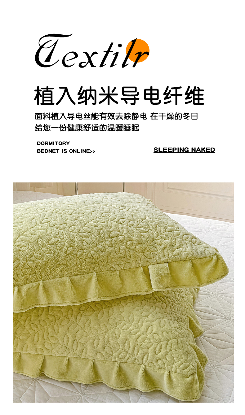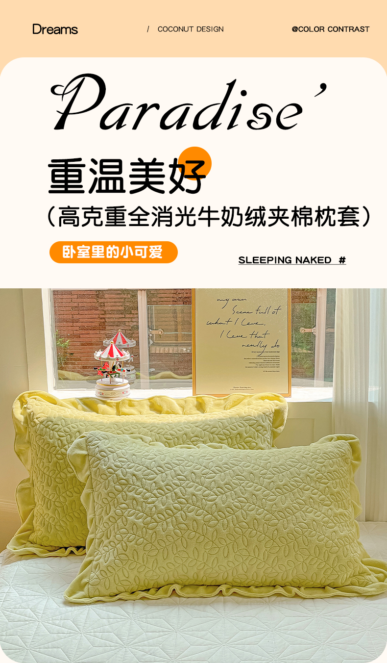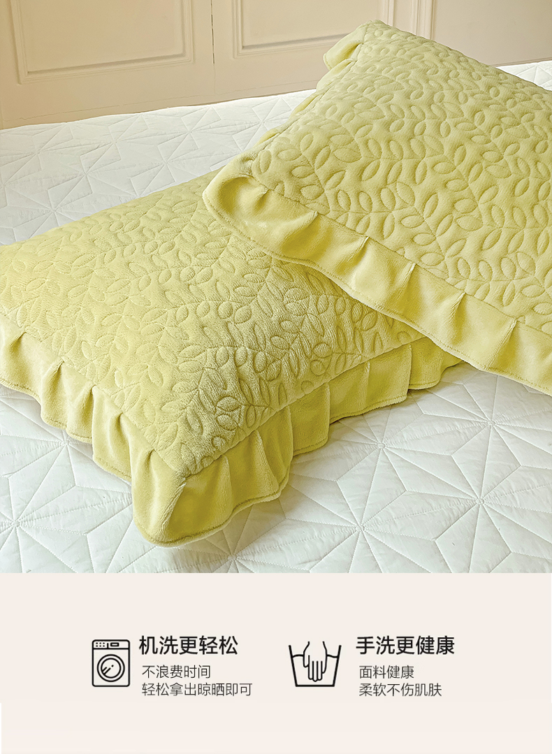 商品名称:漫时光 2025新款纯色牛奶绒花边款枕套 罗曼-芥末黄