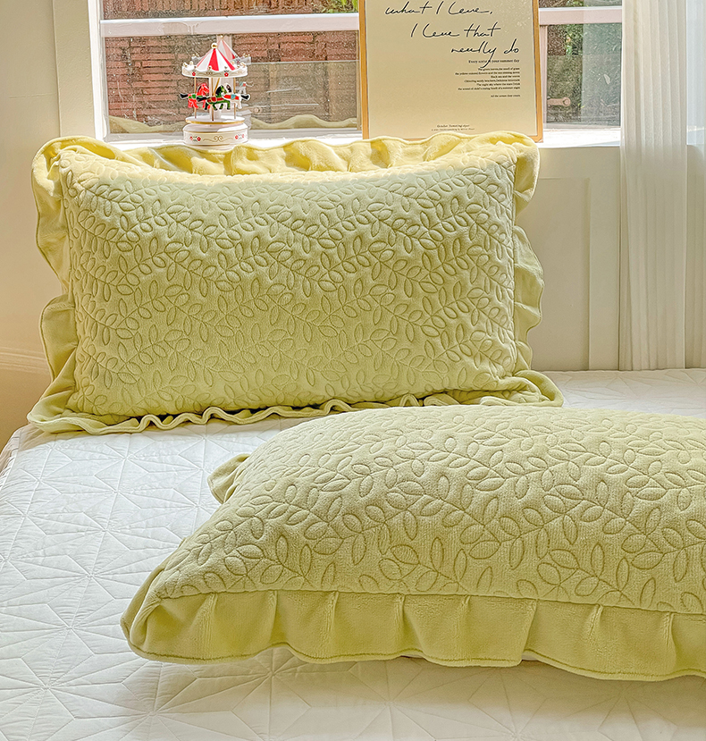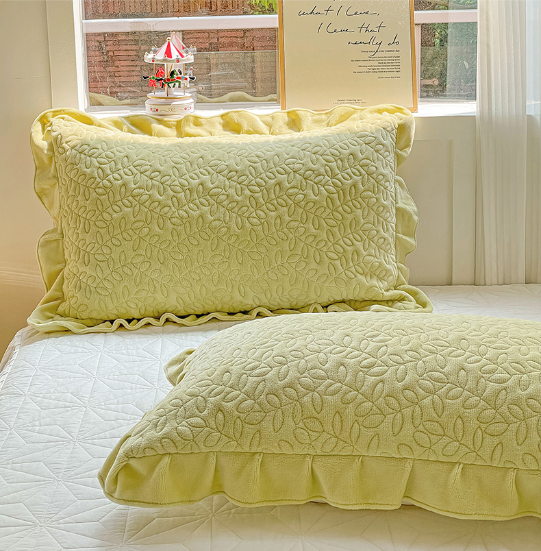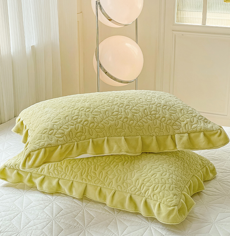 漫时光 2025新款纯色牛奶绒花边款枕套 罗曼-芥末黄