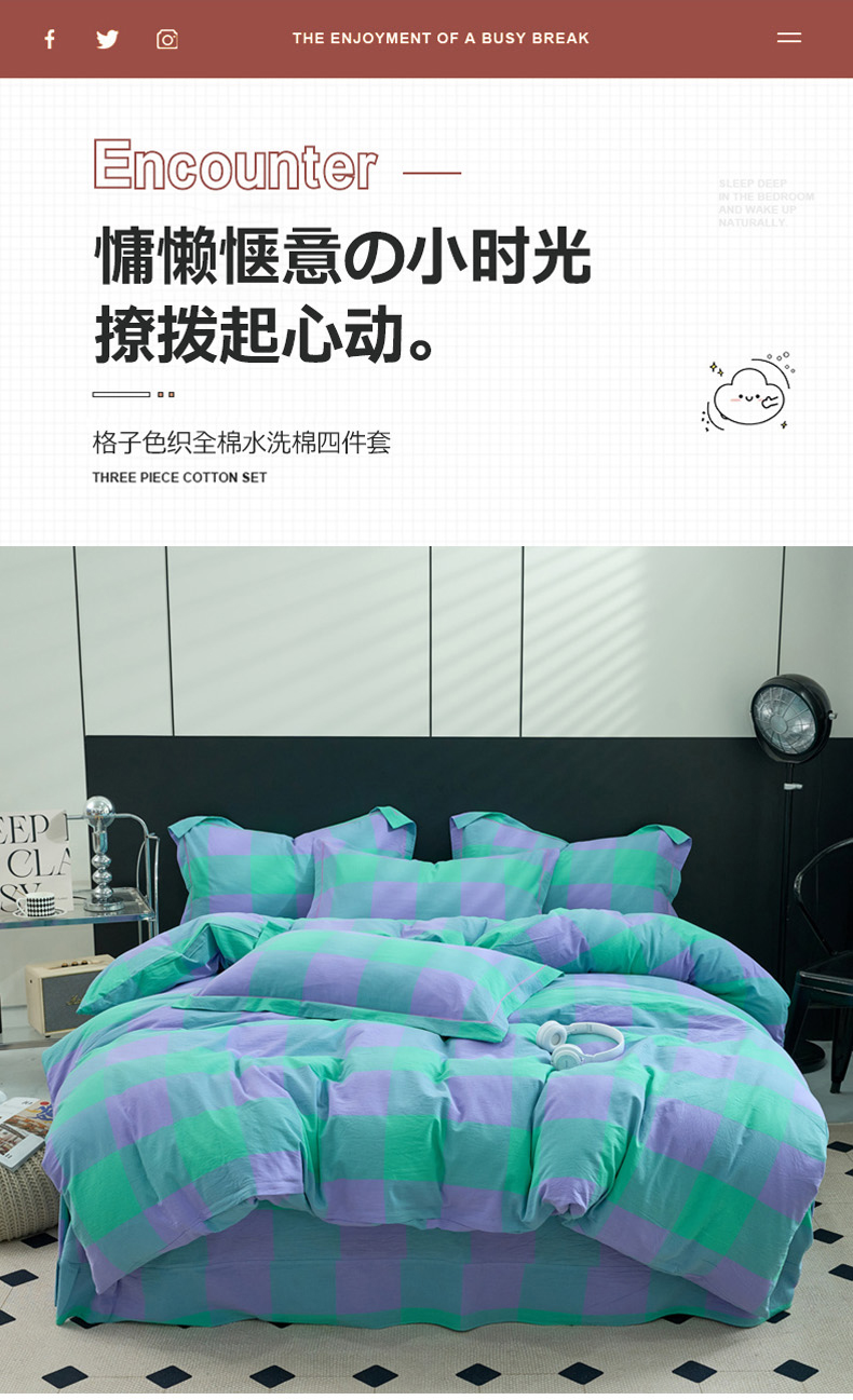 当前位置: 91家纺网 > 商品网购 > 床品套件 > 四件套 > 水洗棉四件套 > 三沁家居 2025新款格子色织全棉水洗棉四件套直播爆款量大价优 绿野仙踪大格
