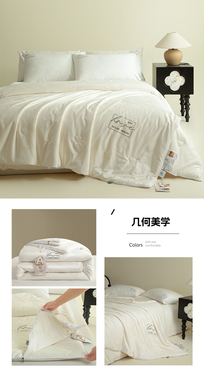 • 91家纺网 家纺一手货源 找家纺 莱登卡奴 2024新款全棉A类60支大提花20%桑蚕丝51%大豆纤维被芯系列 几何美学子母被