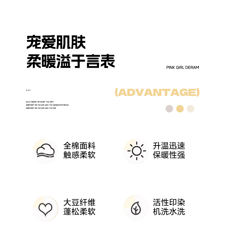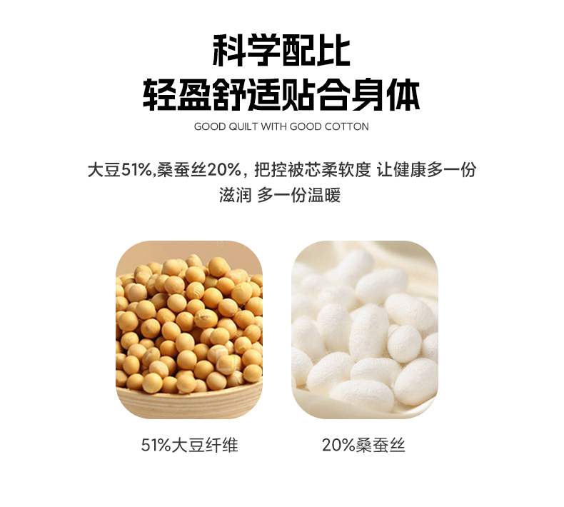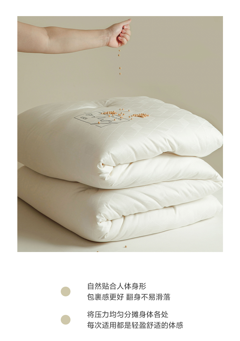 • 填充纤维种类: 大豆蛋白改性聚酯纤维