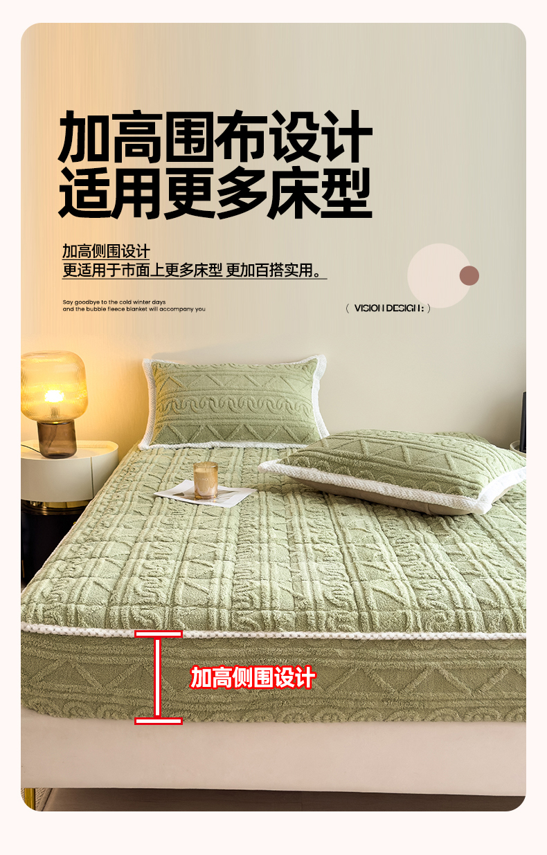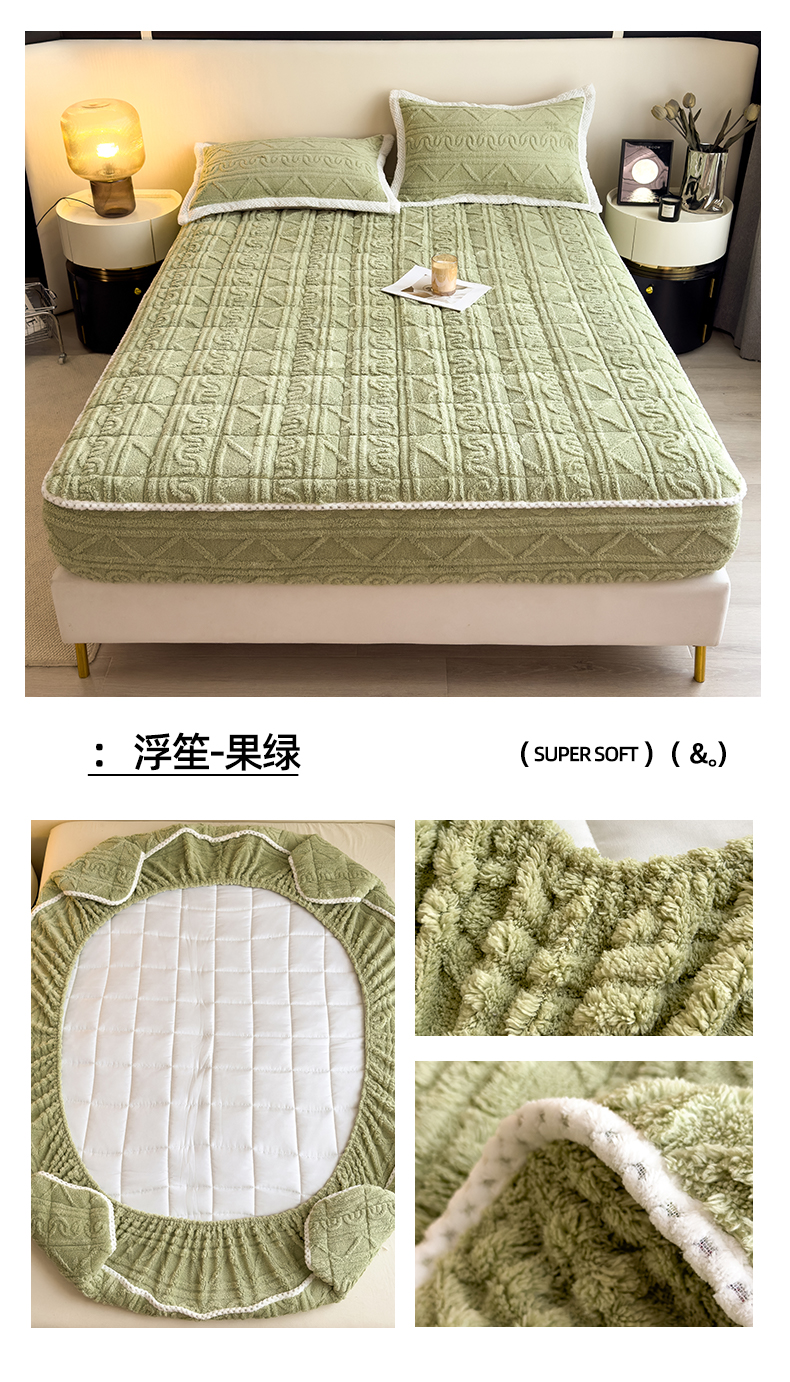 商品名称:暖季家纺 2025新款A类高克重提花塔芙绒单床笠 浮笙-果绿床笠